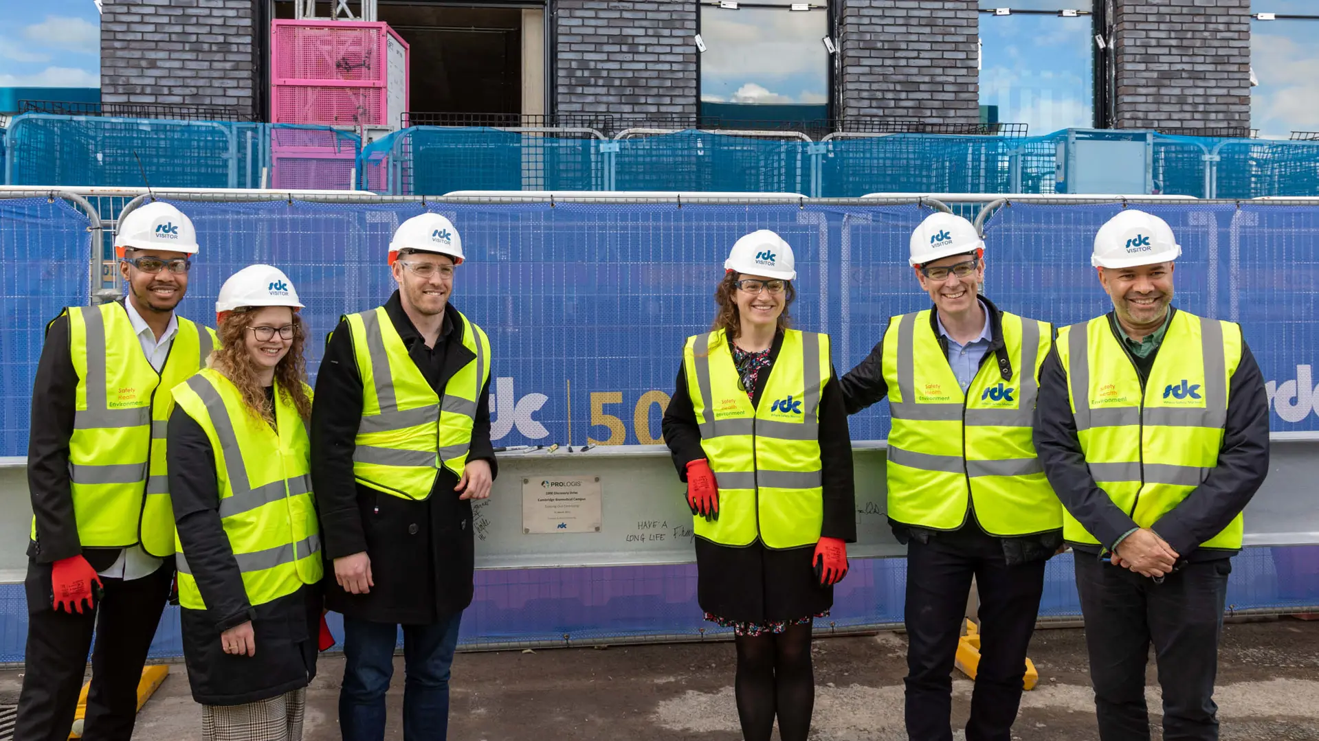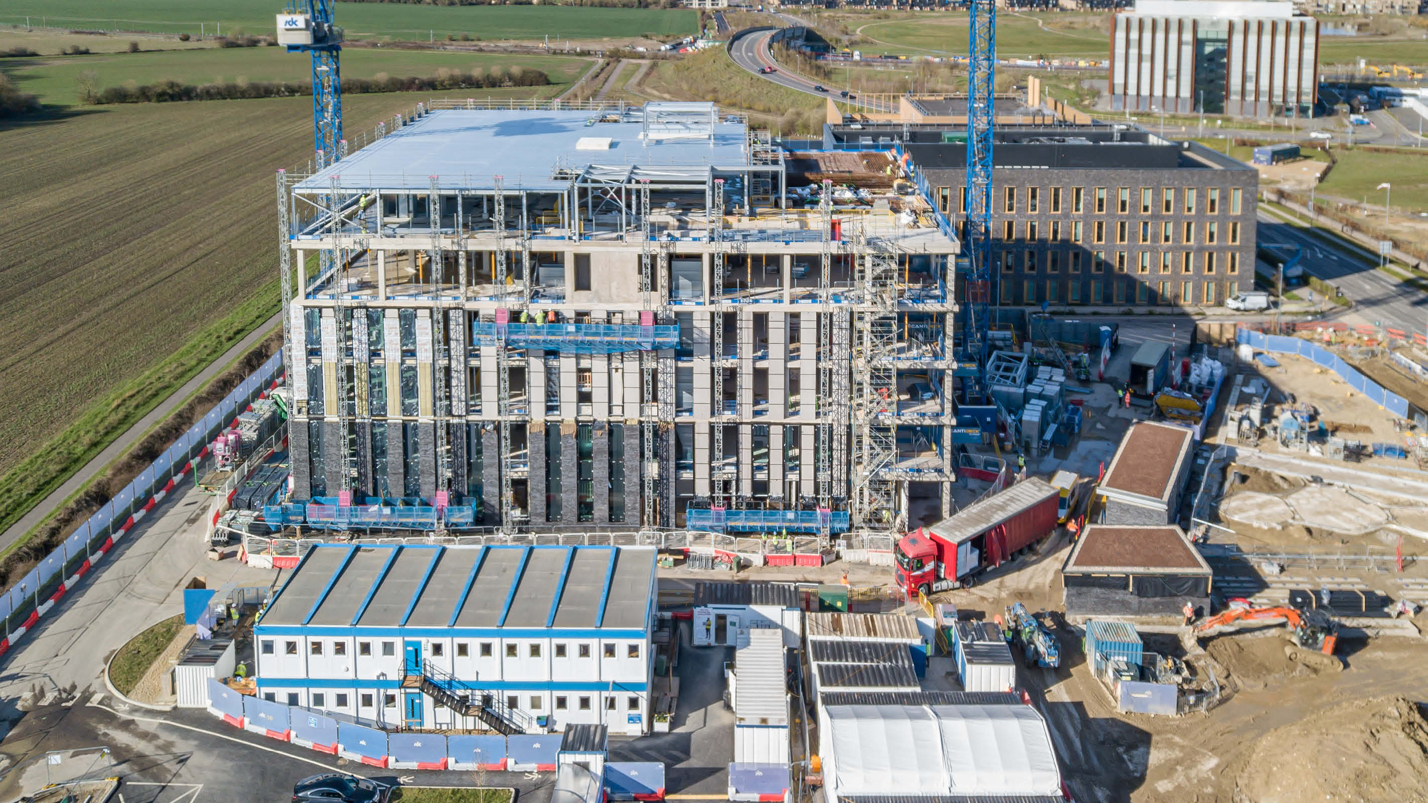 1000 Discovery Drive, Scott Brownrigg’s design for a five storey flexible laboratory building at Cambridge Biomedical Campus, has topped out onsite.