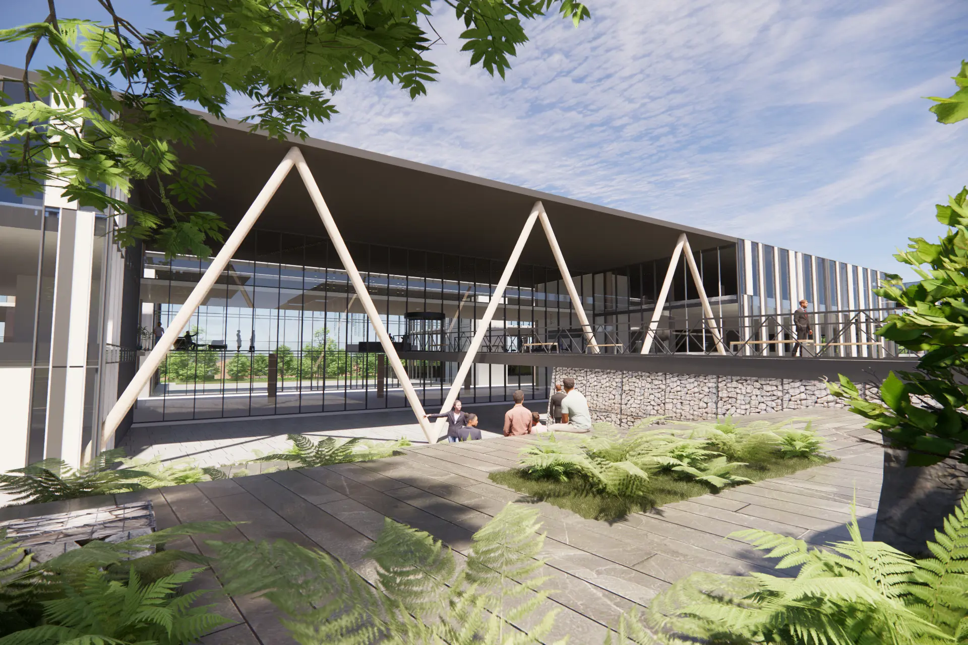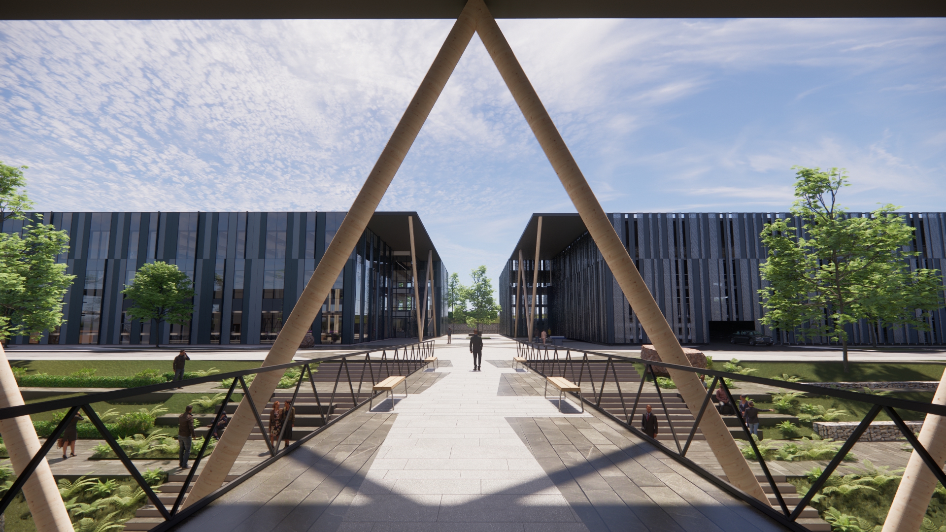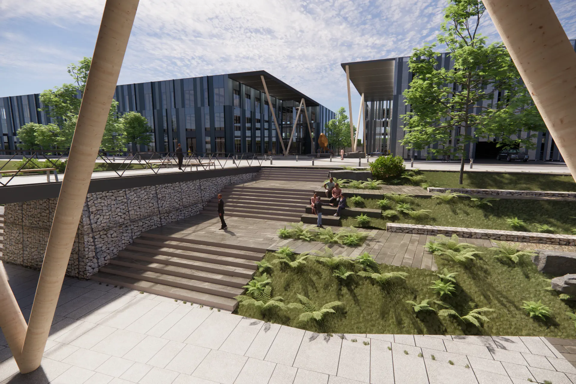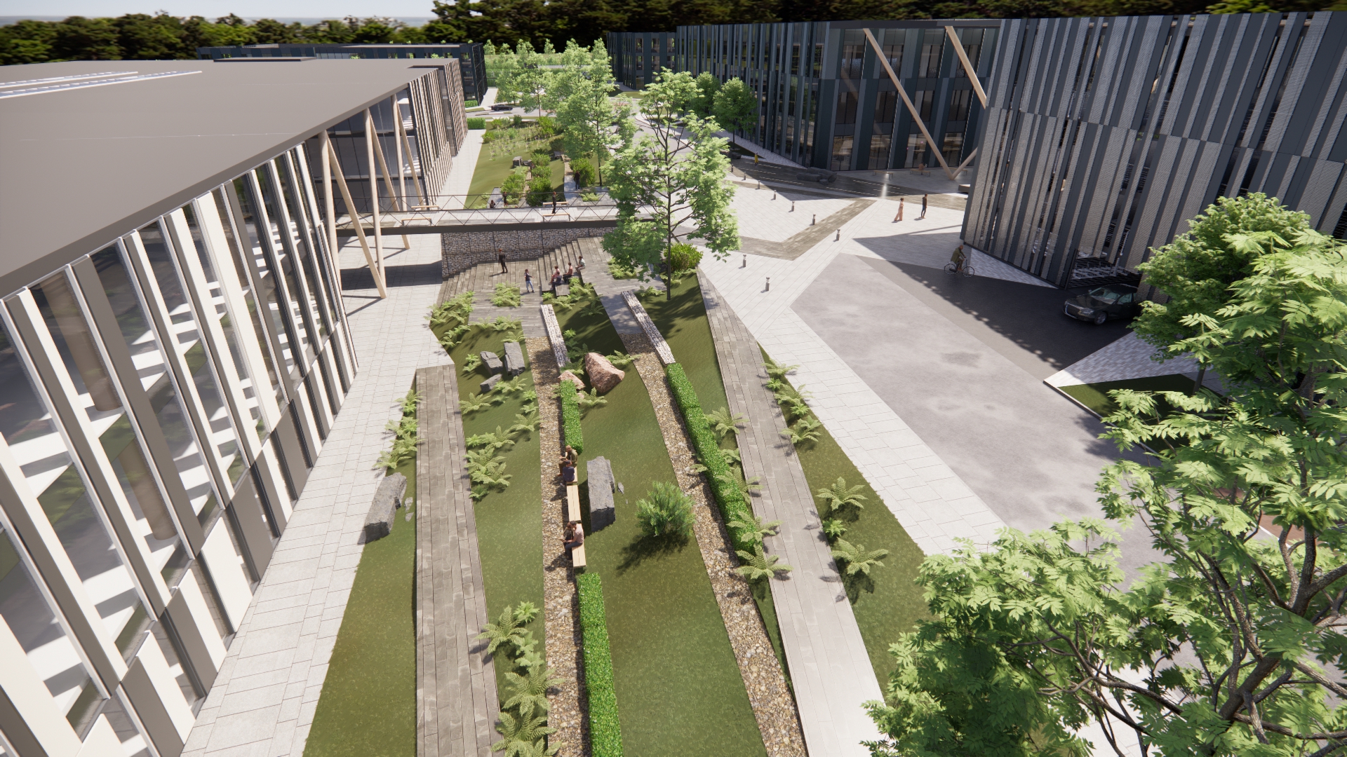 The Campus is centered around a new approach to outdoor collaborative workspace; a series of landscaped terraces, platforms and gardens are designed to be fully accessible to all. Anticipating the benefits of 5g and mobile technology this new outdoor workspace incudes protective covered areas to encourage people to work wherever they like, bringing the indoors out. Combined with highly sustainable, energy efficient buildings with a flexible office and laboratory use, the Cambridge International Technology Park will be an exemplar Science Hub in Southern Cambridge. Reinforcing the region’s status as a world leading center for research and development.