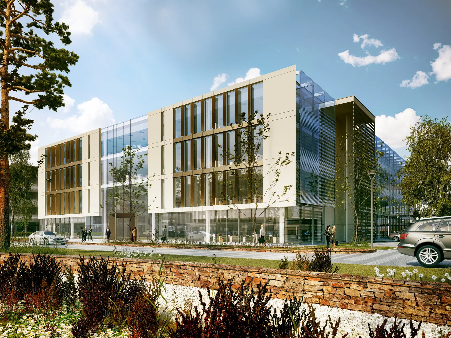 Designed by Scott Brownrigg for Crest Nicholson, the three buildings set the tone for the commercial development within the mixed-use park; a 40 hectare former Major Developed Site (MDS) within the Greenbelt. The first 108 residential properties are currently underway.