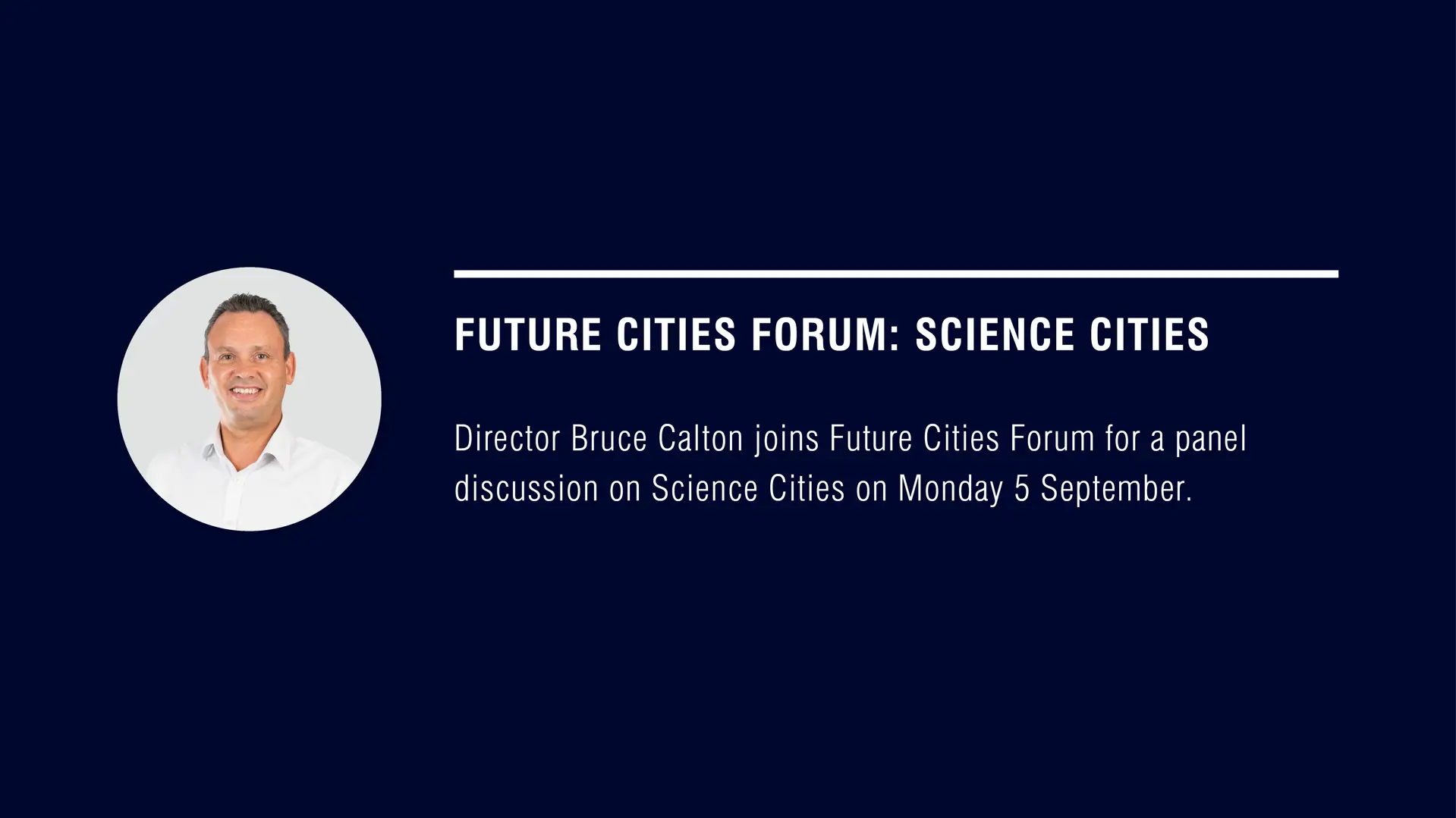 Director Bruce Calton has been invited to join a panel discussion at the Future Cities Forum event ‘Science Cities’ on Monday 5 September.