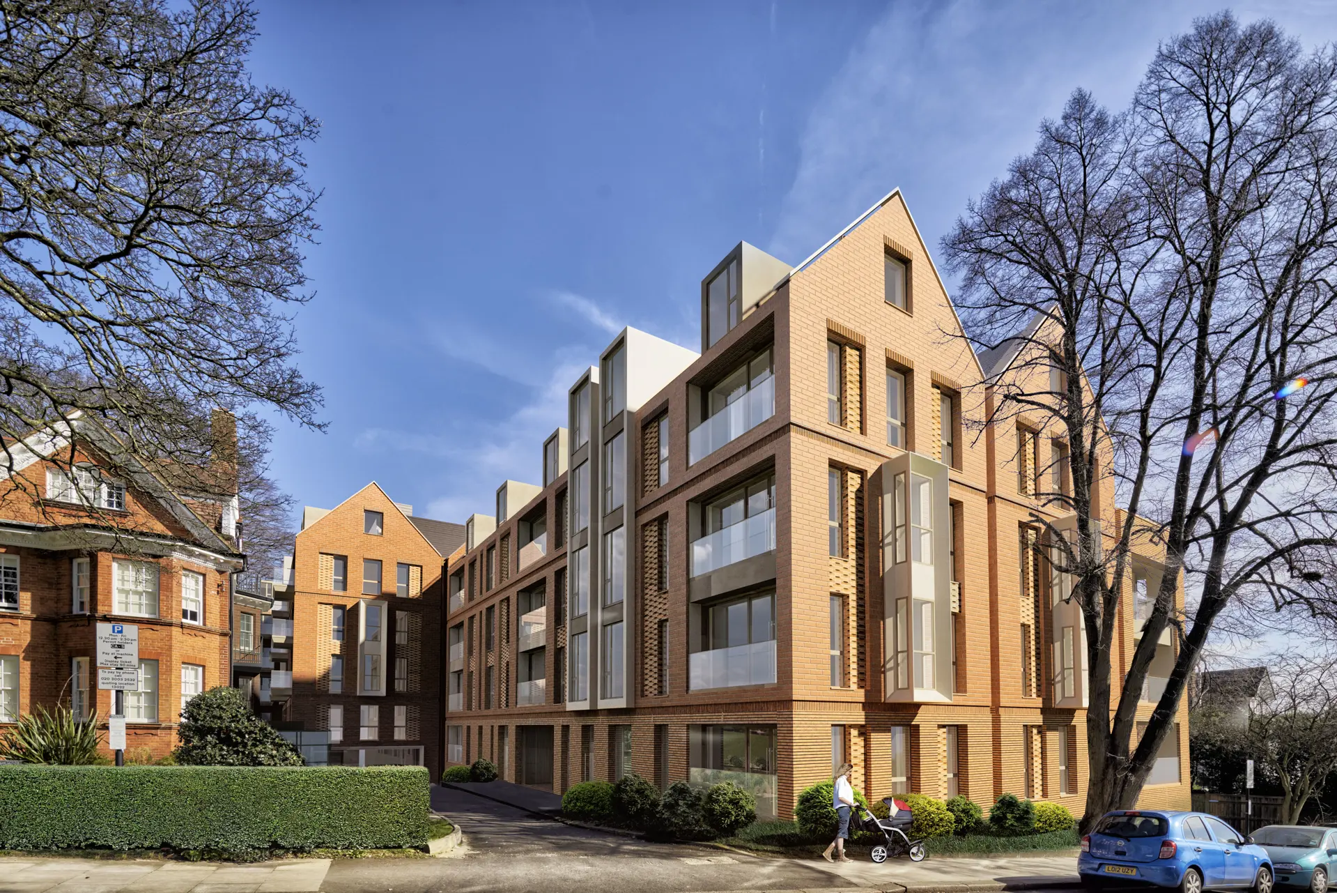Hampstead Manor, on Kidderpore Avenue, for Mount Anvil delivers 156 homes through the conversion of a complex group of five Grade II Listed buildings including the 1843 Greek Revival style Kidderpore Hall (built by an East India Company merchant), the Chapel, former student residences, the Skeel Library and a listed Summer House. The scheme also included the design of three new apartment blocks and eight new townhouses within sensitively landscaped grounds with two levels of new basement car parking.
