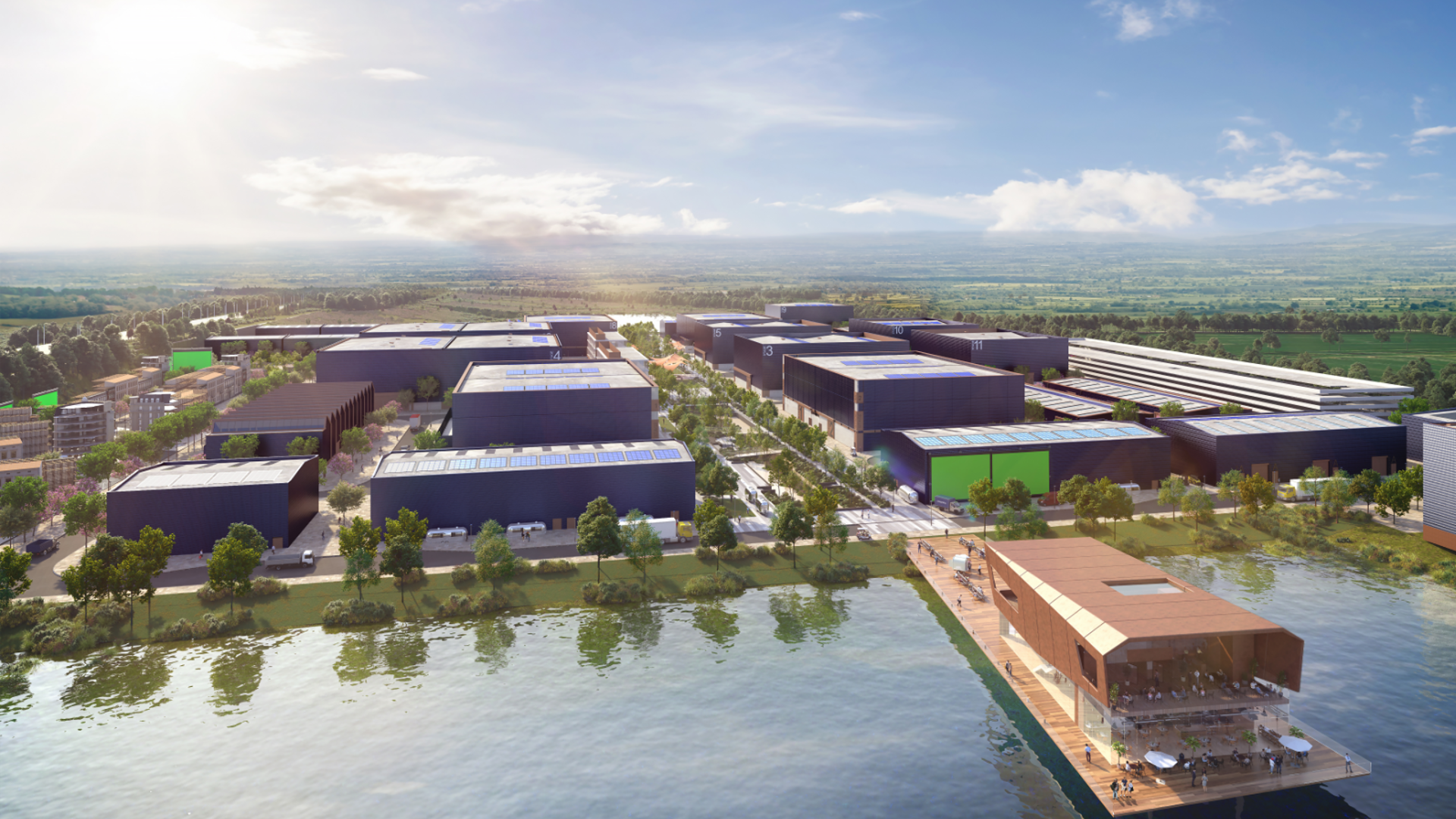 A rare opportunity to create the ‘ideal’ film campus from scratch, the new-build scheme redevelops a 143-acre brownfield site to discreetly provide over 1.75m sq ft flexible indoor and outdoor studio space and associated facilities, set within a tranquil waterside environment that crews can call home.