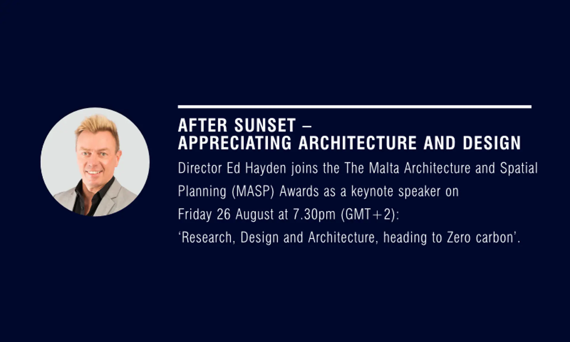 On Friday 26 August, Director Ed Hayden delivered a keynote talk titled ‘Research, Design and Architecture, heading to Zero carbon’ at the Malta Architecture and Spatial Planning (MASP) Awards at the MUZA Courtyard in Valletta, Malta.
