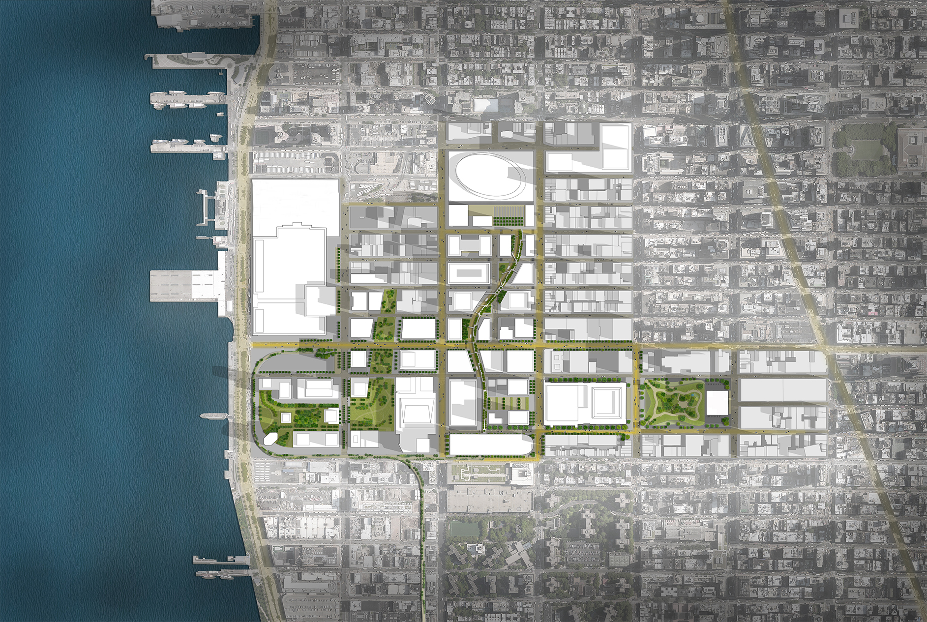 The proposed masterplan attempts to solve the pedestrian challenges created by the existing road network connecting the Lincoln Tunnel. It contemplates extending the Highline to the Times Square area, creating a new park similar to the scale of Bryant Park, as well as other public green spaces. From there it proposes a streamlined solution: to replacing MSG and the PABT, and improving and expanding Penn Station while allowing all existing facilities to stay fully functional until the new facilities are fully operational.
