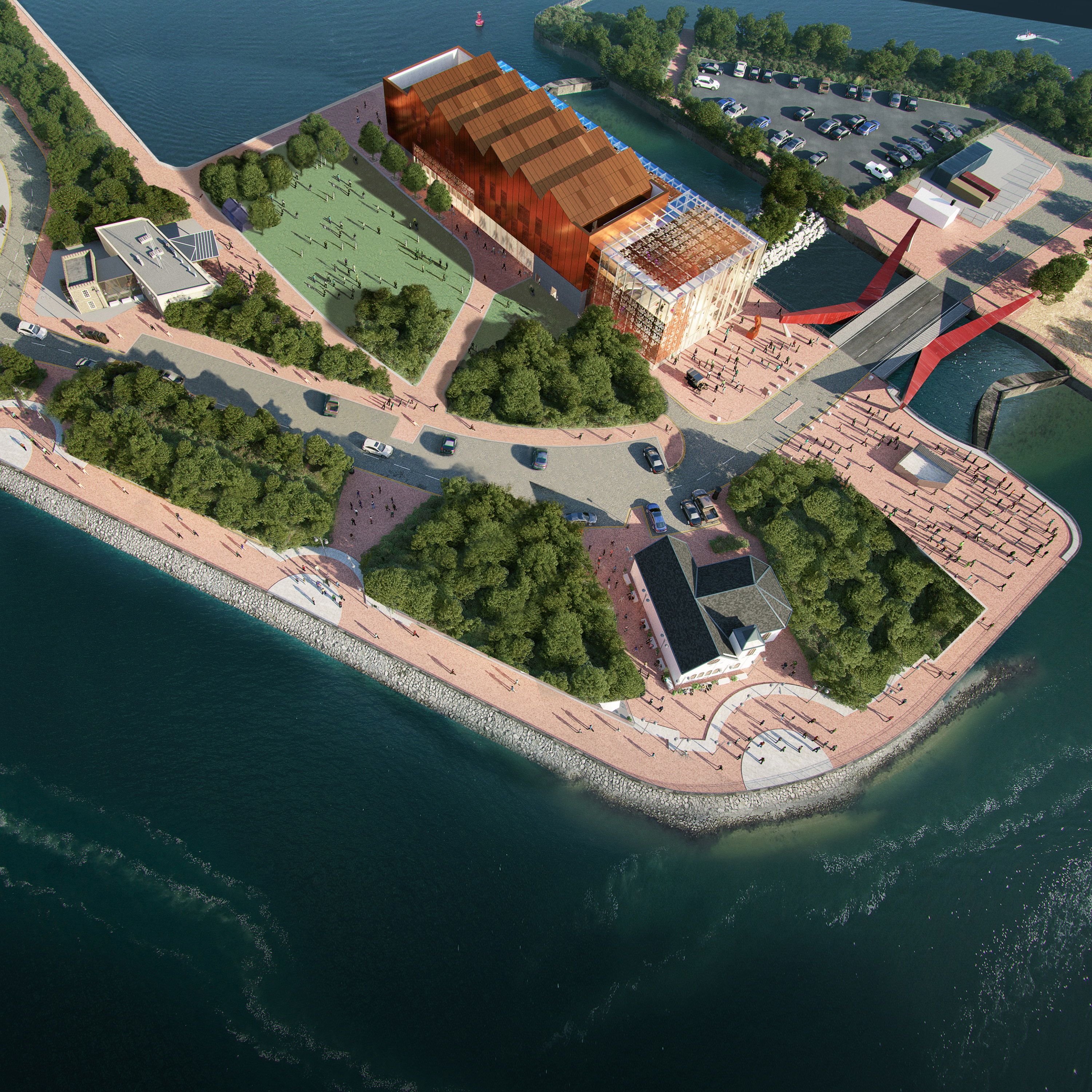 “The design of the building has been carefully considered to fit within the current landscape of Cardiff Bay. The architecture is a contemporary expression of the modern museum, research and visitor facility and evokes memories of the industrial and maritime heritage of this particular part of the Bay. The visually transparent and physically permeable element of the building draws visitors in and allows events to migrate out, creating a positive amenity to the park and the immediate community.”