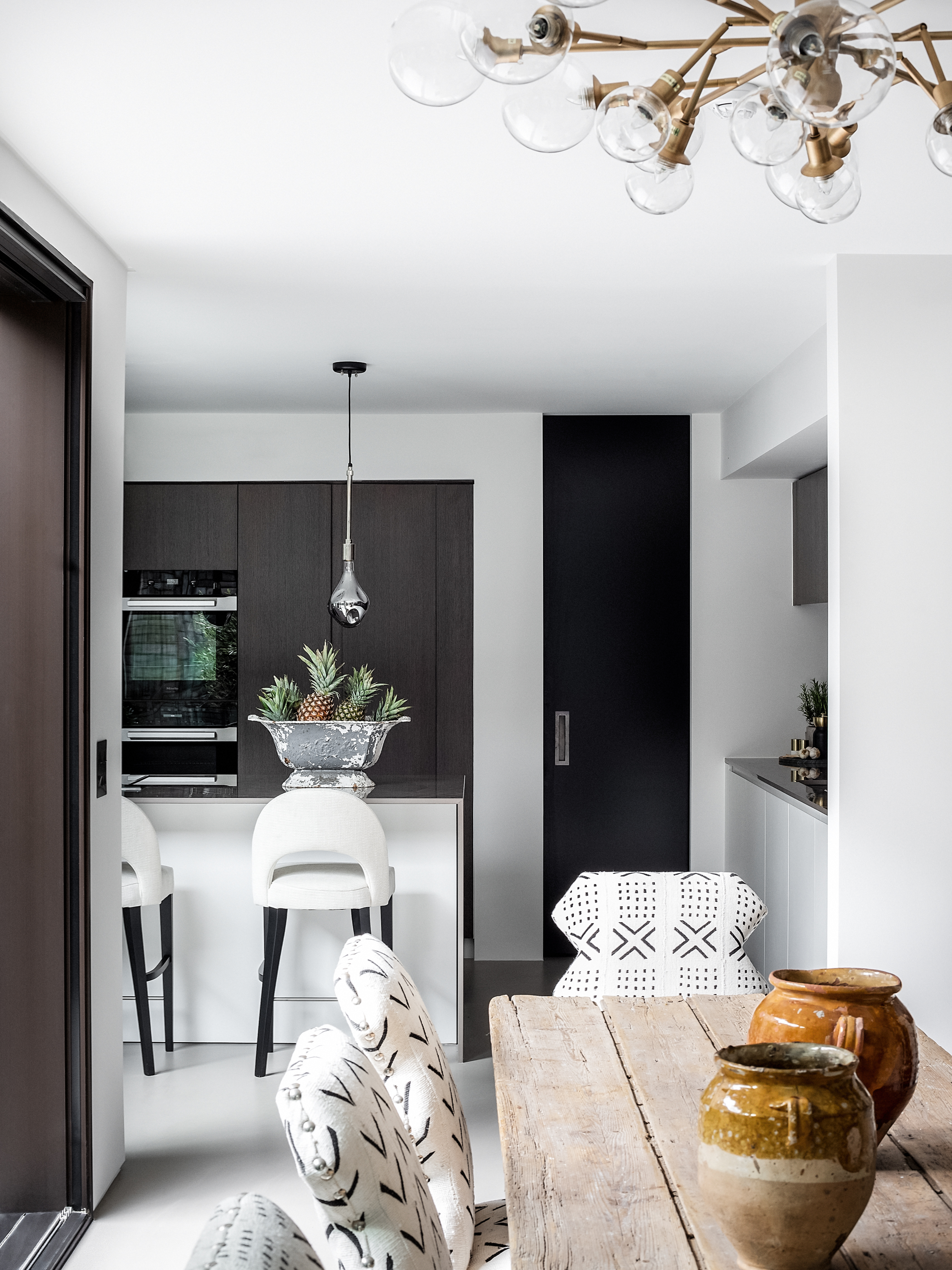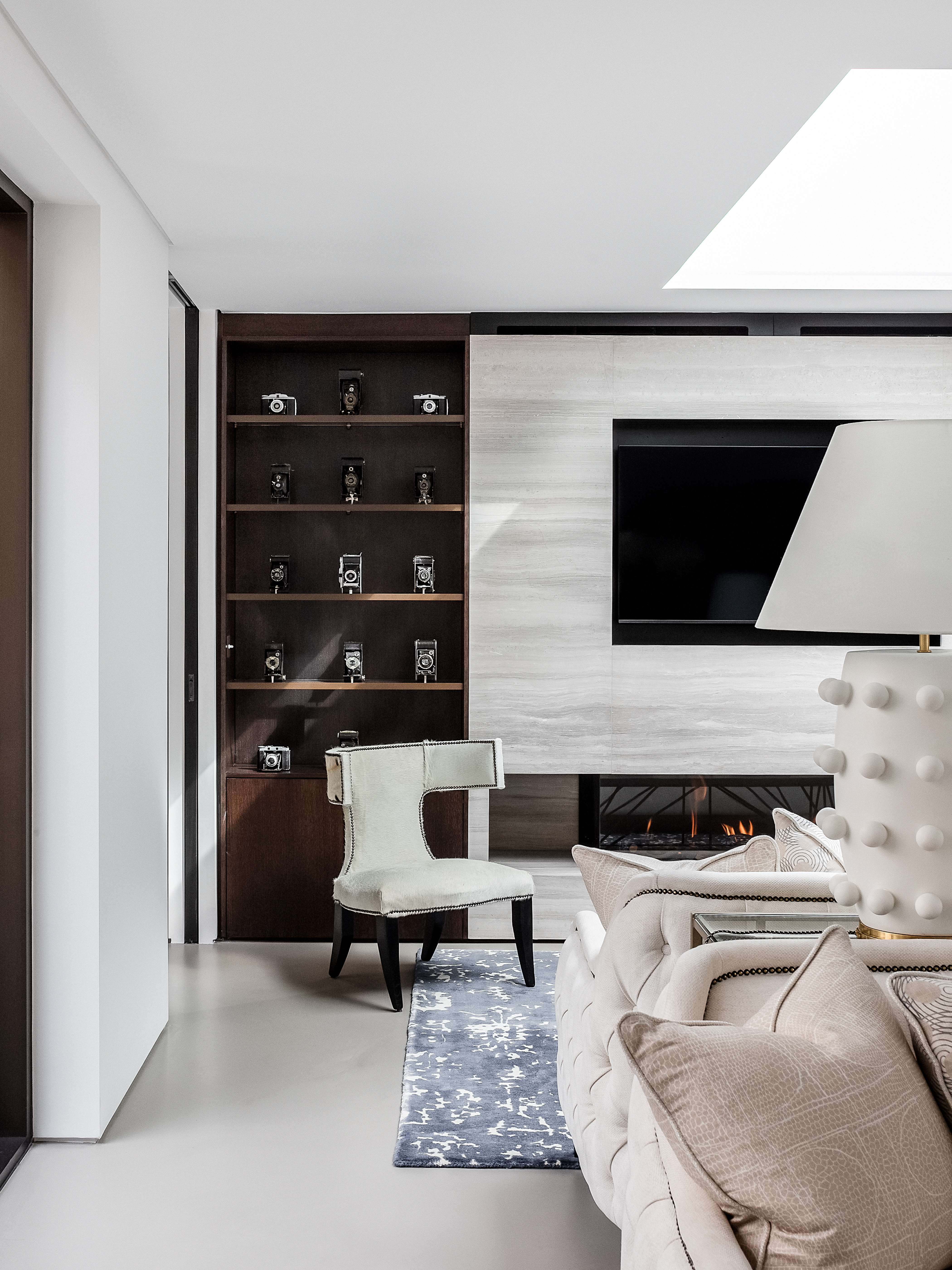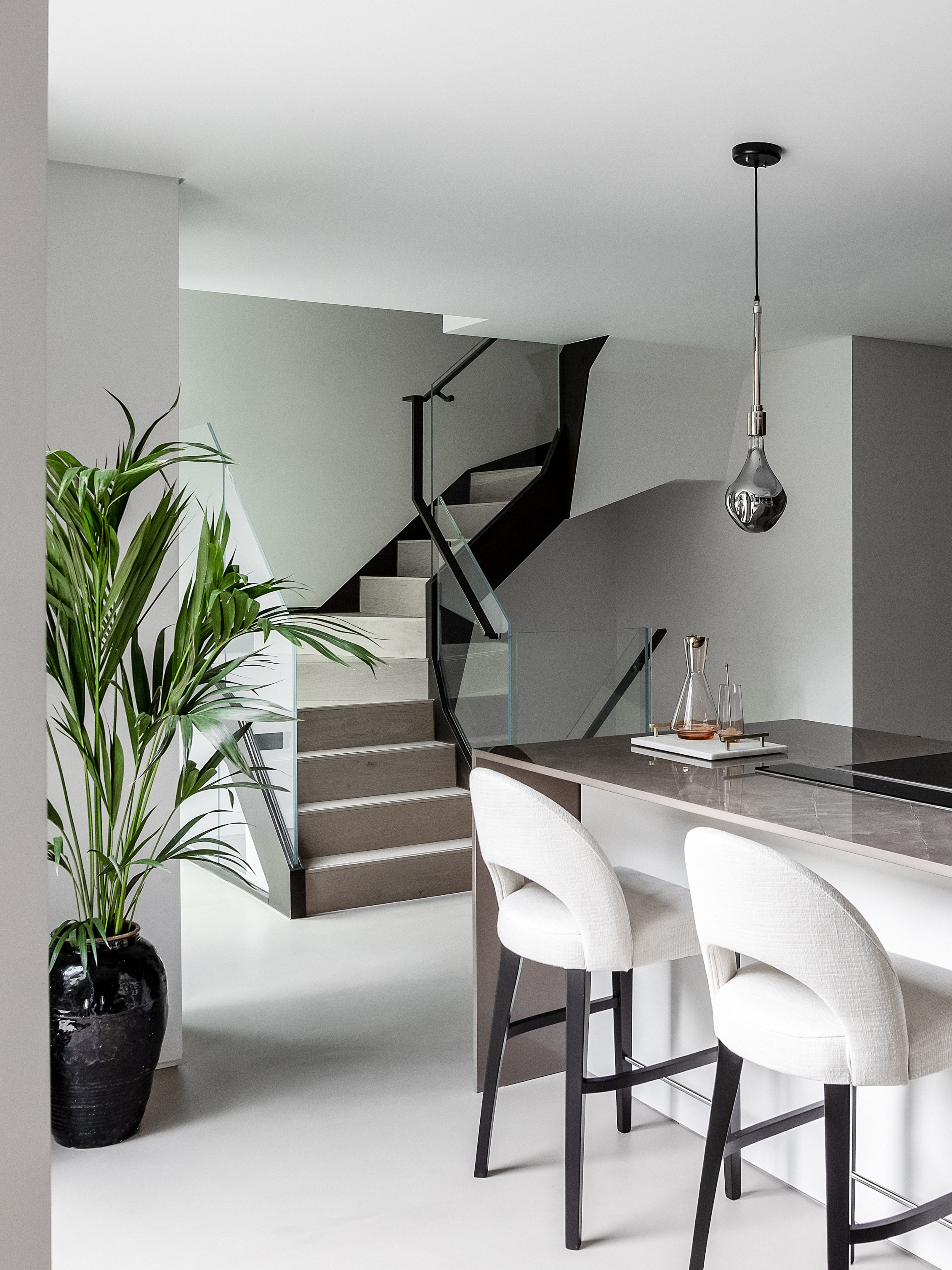 Designed to bring the outside in, the courtyard is a central part linking exterior and interior. On the ground floor the main living space, kitchen and dining area wraps around and connects with the courtyard via full height sliding and bi-fold doors. The basement accommodates a media, games and guest bedroom. Two further bedrooms and a master suite are located on upper floors. A sense of privacy and ambient light is achieved through a series of roof lights that highlight, and capture the essence of our contemporary interior design concept and fit out. Luxurious furnishings and home styling by designer Andrew Martin complement the design.