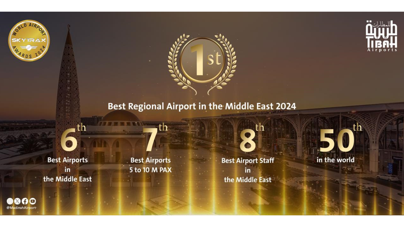 This week, Prince Mohammad Bin Abdulaziz International Airport (Madinah Airport) was awarded the Best Regional Airport in the Middle East in the Skytrax World Airport Awards.