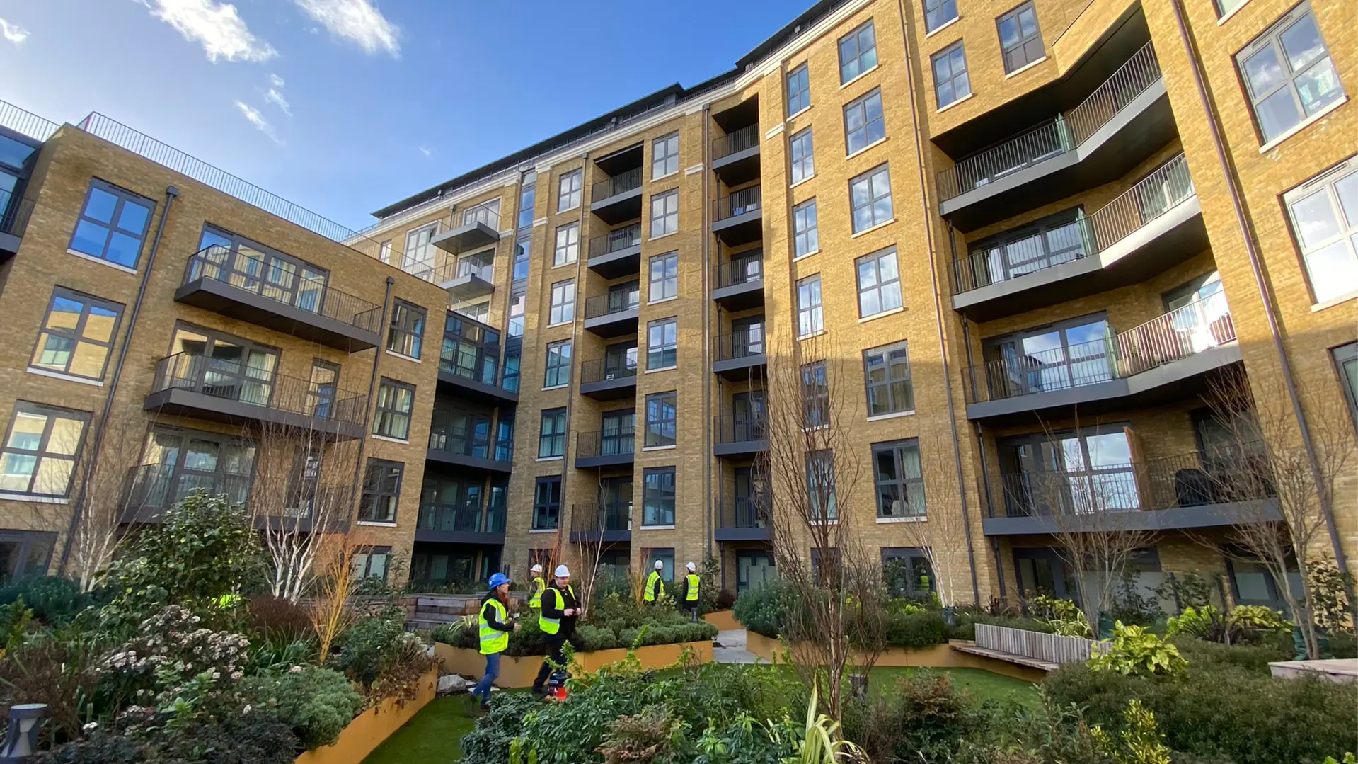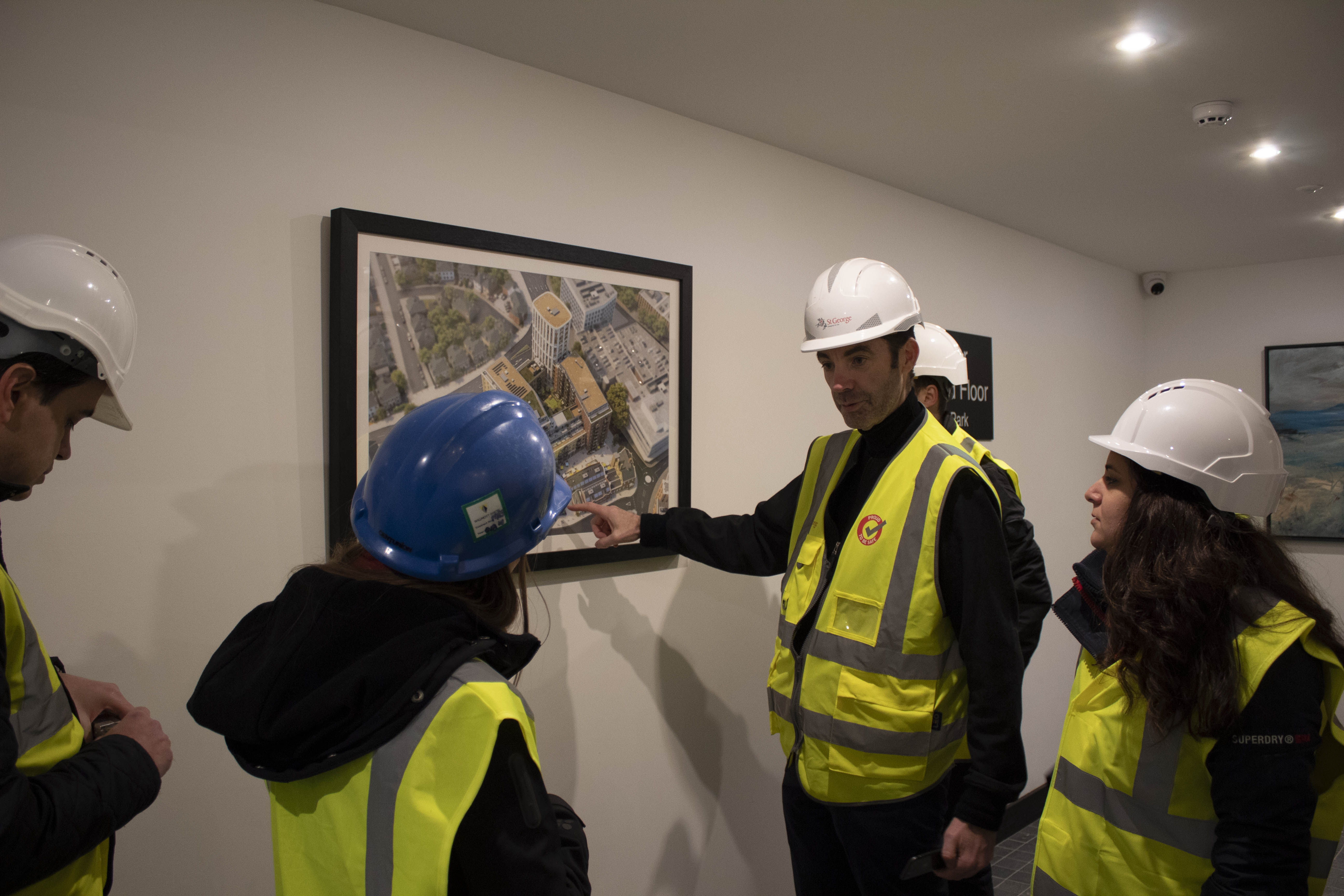 We recently took a team from Design Delivery Unit on a site tour of our Royal Exchange scheme. Based in the heart of Kingston-Upon-Thames the vibrant, new mixed-use residential development comprises of 319 apartments. We were appointed by St George to optimise and deliver the scheme whilst working alongside the concept architects JTP and Simon Bowden to maximise the value of the site, improve buildability and detail the refurbishment of the two listed buildings on site.