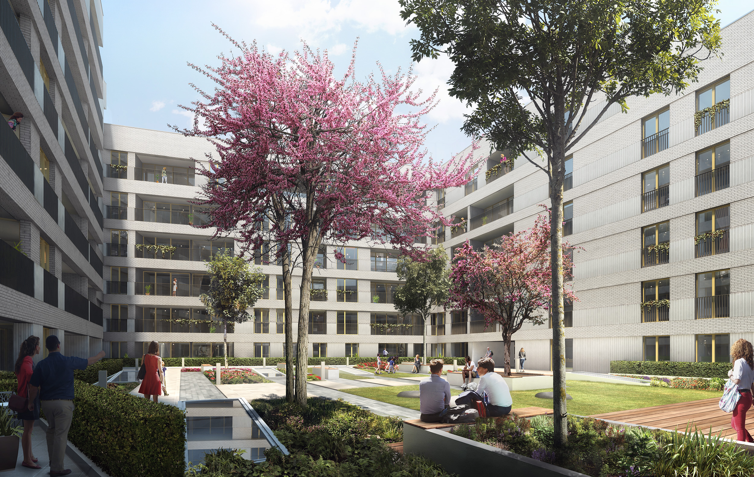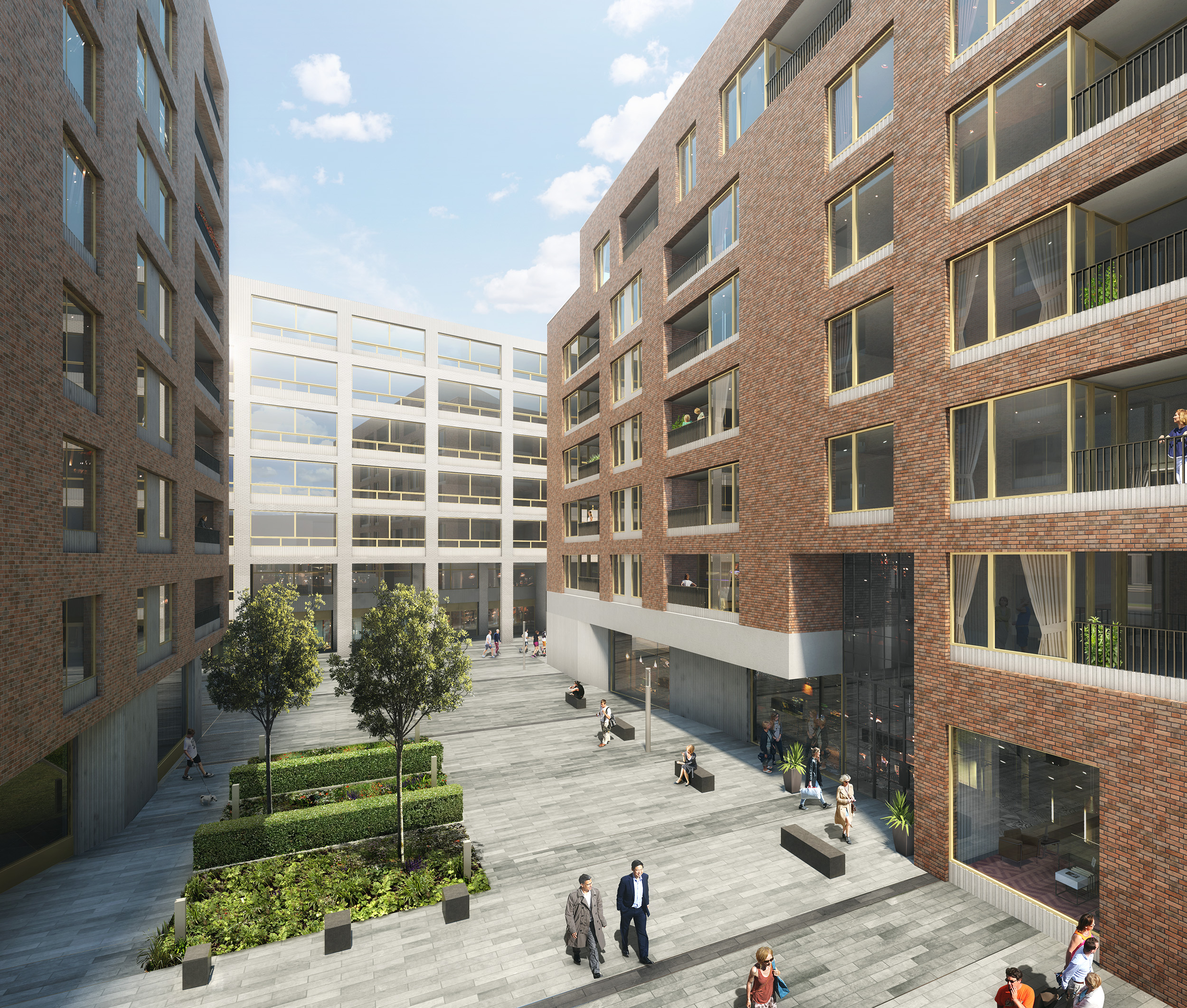 The conceptually straightforward residential blocks contain over 75 different recessed balcony configurations, combining brick, GRC panelling and glazed elements. Each of these balconies required careful coordination with the internal layouts to ensure that the different façade elements were brought together successfully.