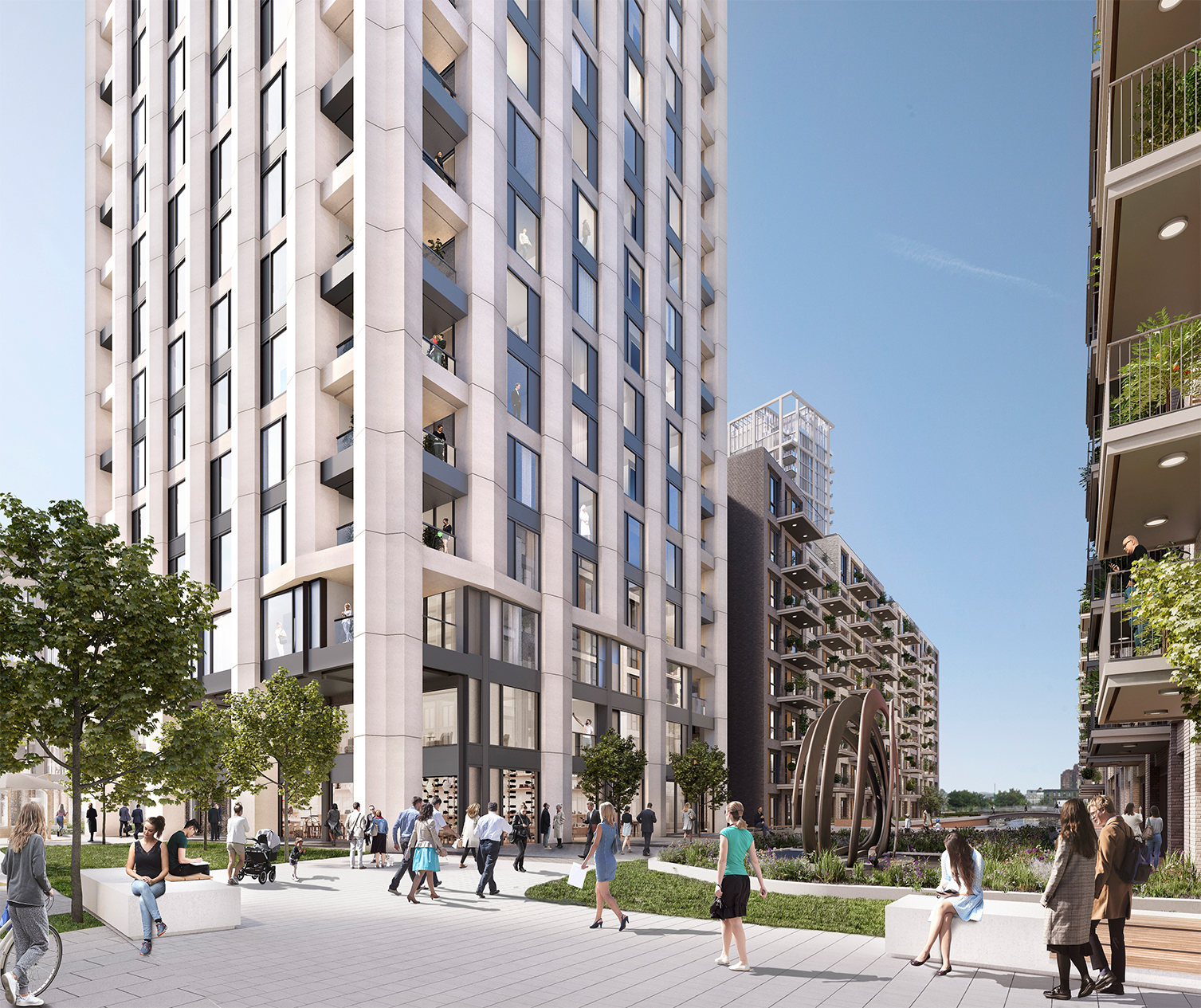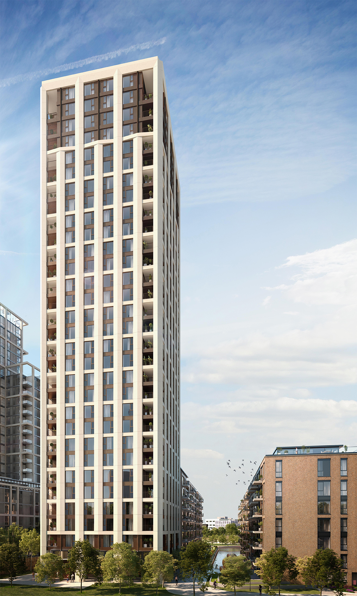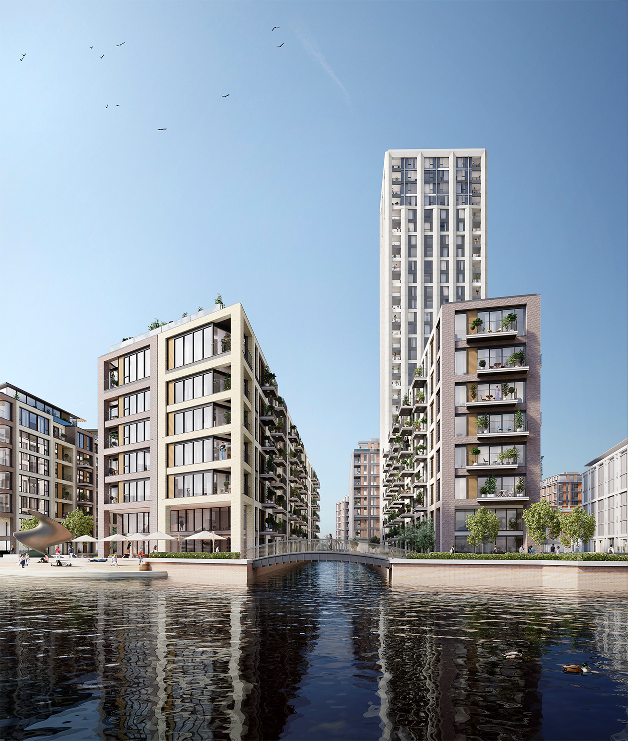 Design Delivery Unit have secured the delivery of the last phase of this highly successful development in West London. The phase consists of 415 residential apartments centred around high quality external landscaped spaces. The development embraces a strong relationship with the water, which flows between all buildings, stitching the site together and referencing its historical context.
