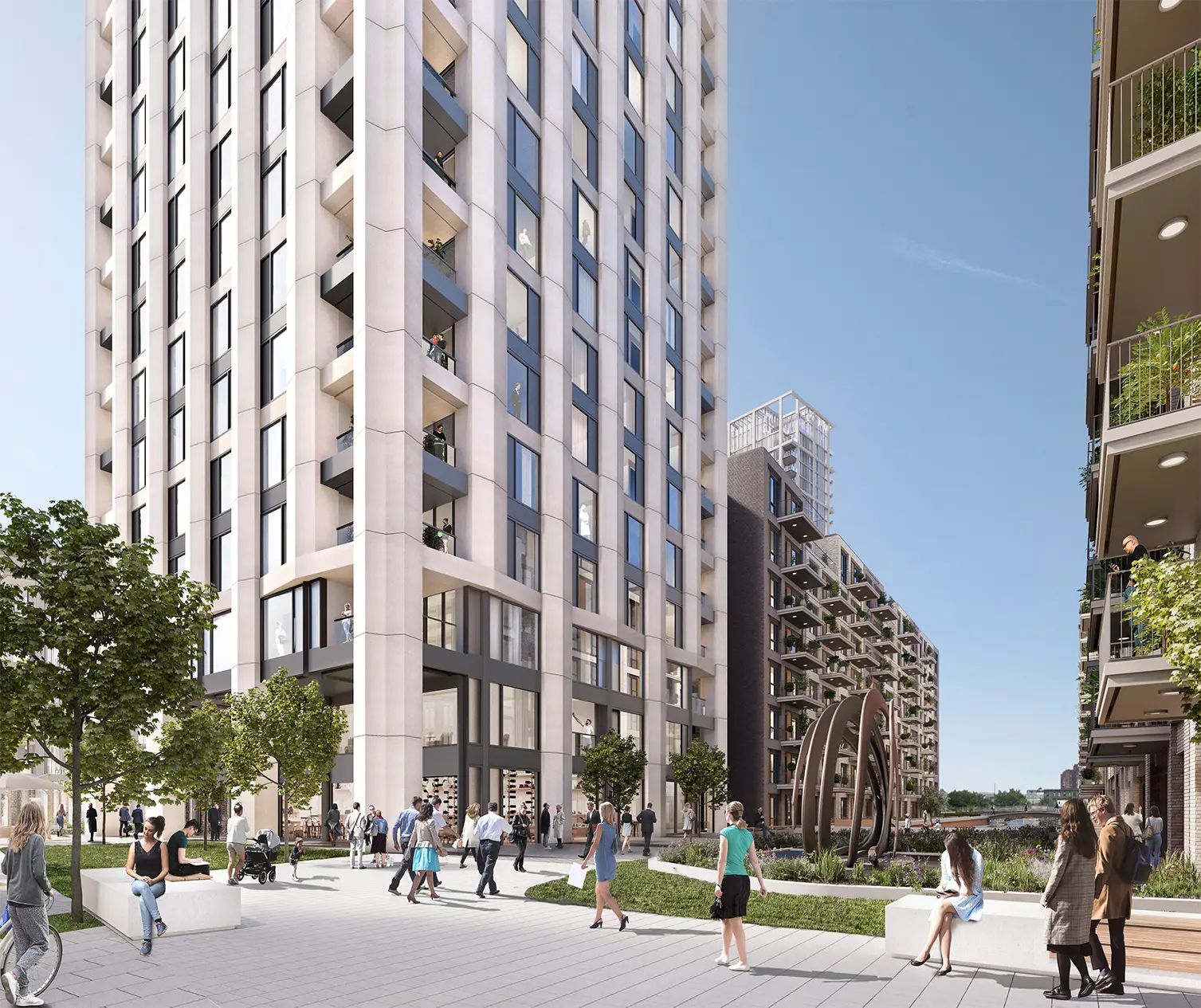The pinnacle of the design is the 30 storey tower which benefits from fantastic views across the capital. We will use experiences from other sites such as Atlas and Centenary Quay for the specialist unitised panel design of the tower. The experience of delivering this building typology allows us to work with confidently with the other consultants to meet the client’s high expectations and create a striking piece of architecture.