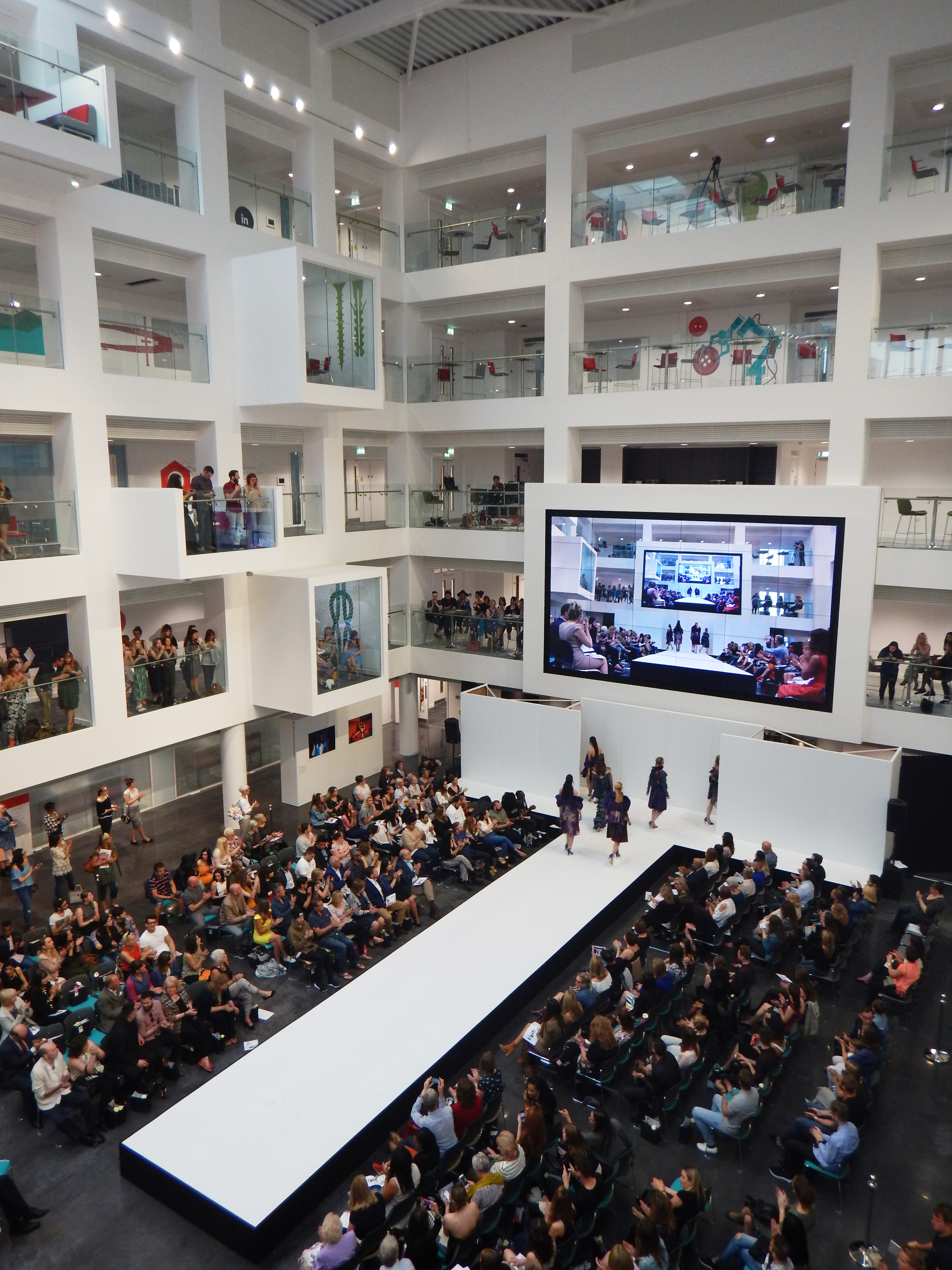 The atrium connects new facilities to the north with the existing Sir John Everett Millais Building to the south and functions as a major arrival space, social learning area and a venue for large events such as gala dinners, exhibitions, fashion shows - previously, there was no significant congregational space on the campus for this.