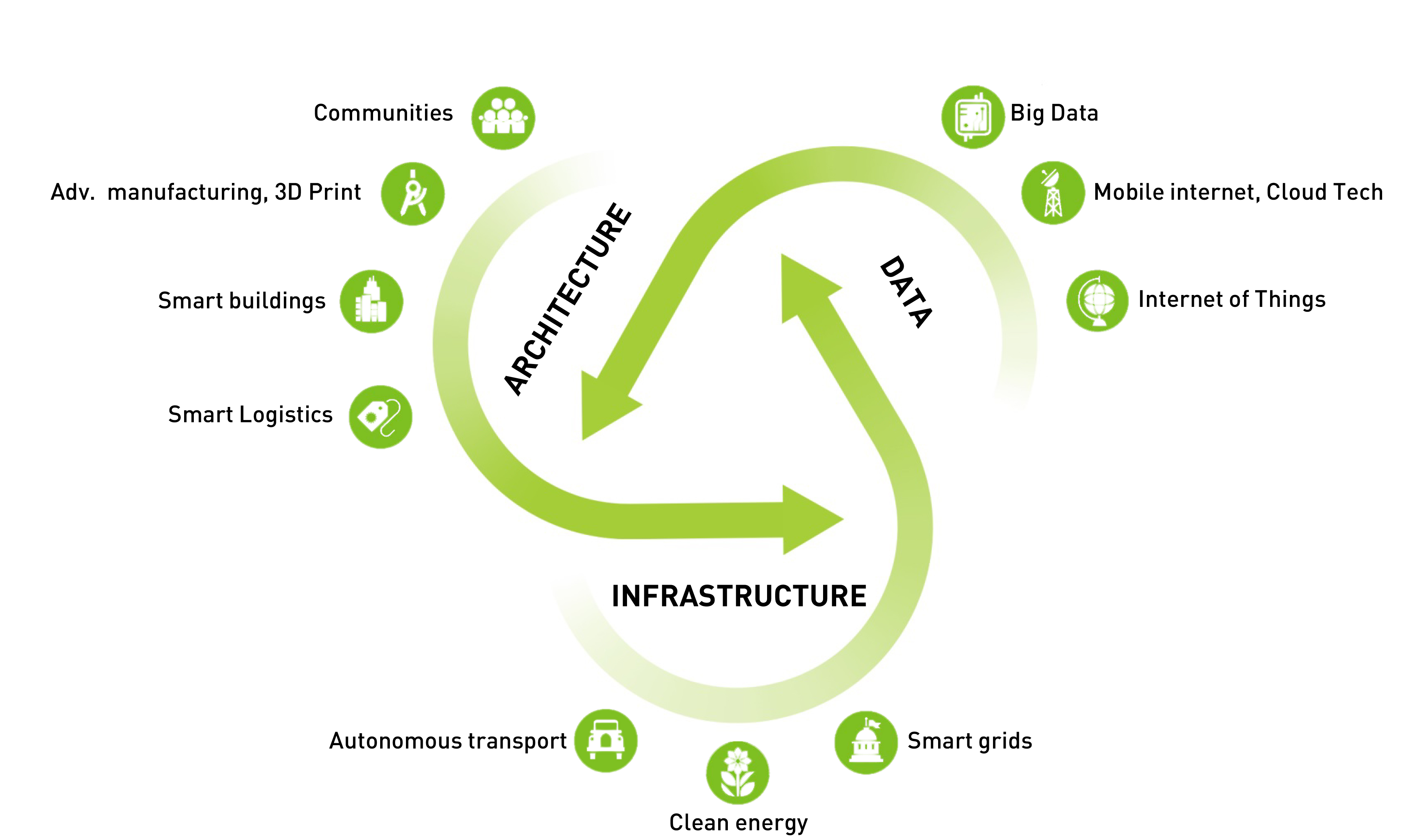 Paradigmatic shifts are taking place in scientific processes (E-Sciences) and industrial policies (E-Infrastructure) which are having a strong impact on how our cities are developing. In fact, although abstract values such as computational capacity and communication technologies are swiftly imposing themselves as decisive parameters, space has by no means become an obsolete category. On the contrary, these processes are deeply rooted in the dynamic strategies shaping the built environment on the one hand and the real-estate market on the other, requiring both a critical, political and technical re-appraisal from the architectural profession city managers.