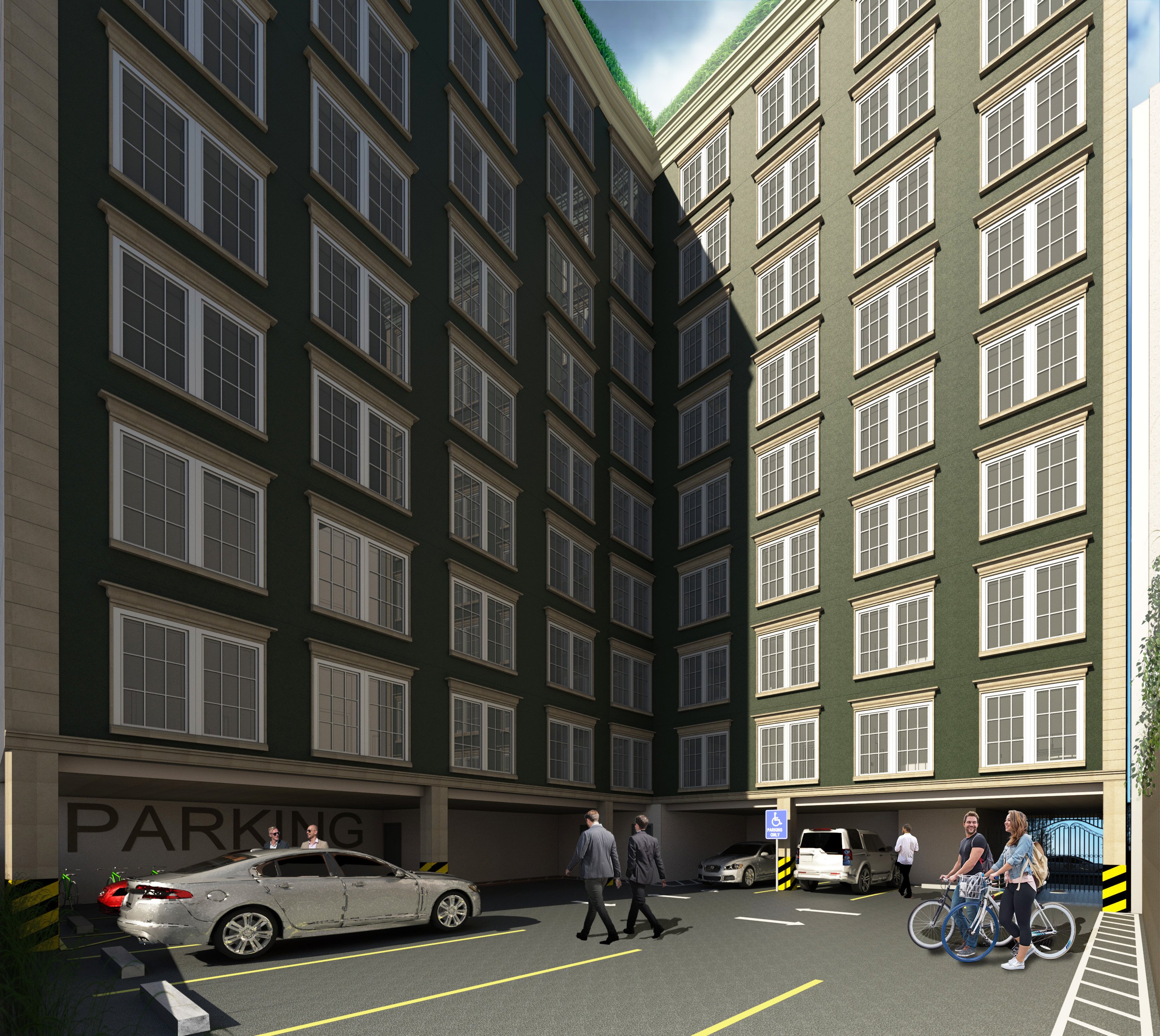 The L-shaped design will provide one centrally located elevator. Amenities will include laundry facilities, a rooftop terrace, a community room, an additional community room for seniors, bicycle storage and ten residential parking spaces.