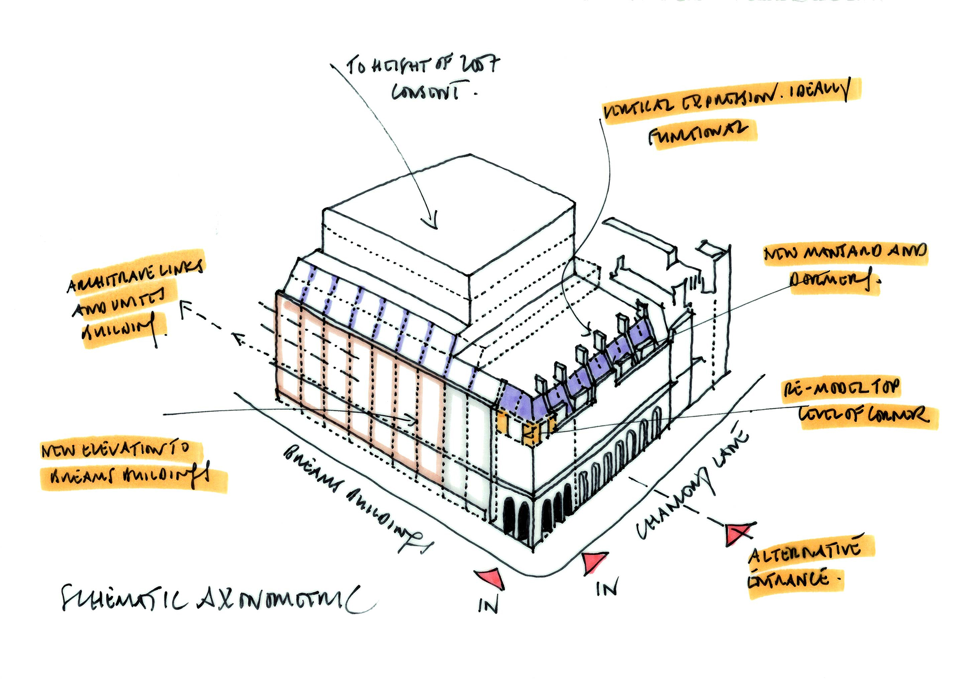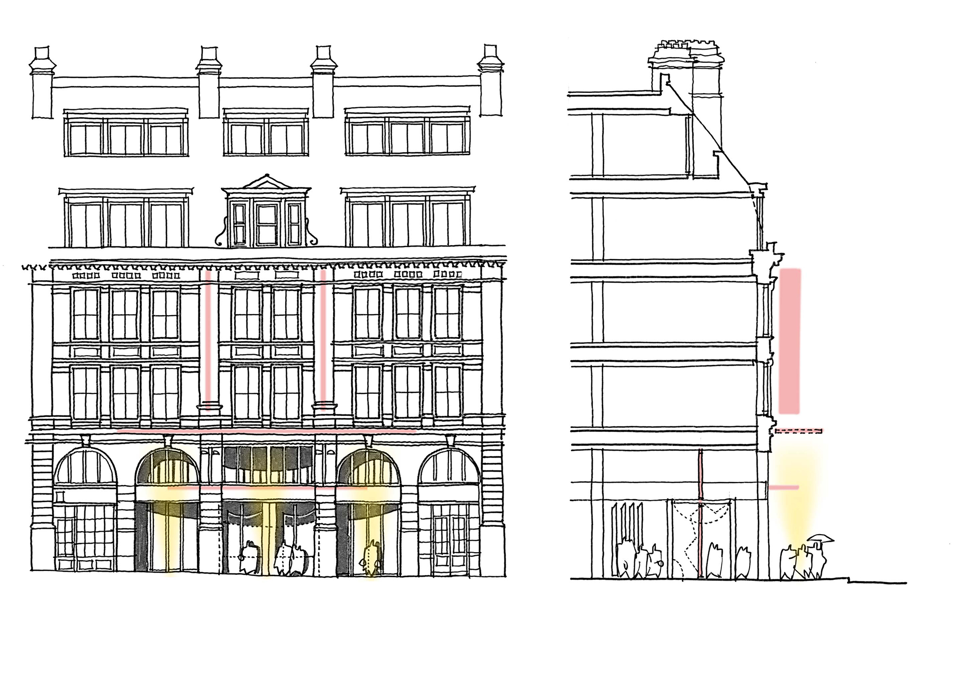 The rest of the Chancery Lane frontage remains in retail use. Double height units with large, contemporary windows help to bring the ground floor to life as part of the evolving streetscape.