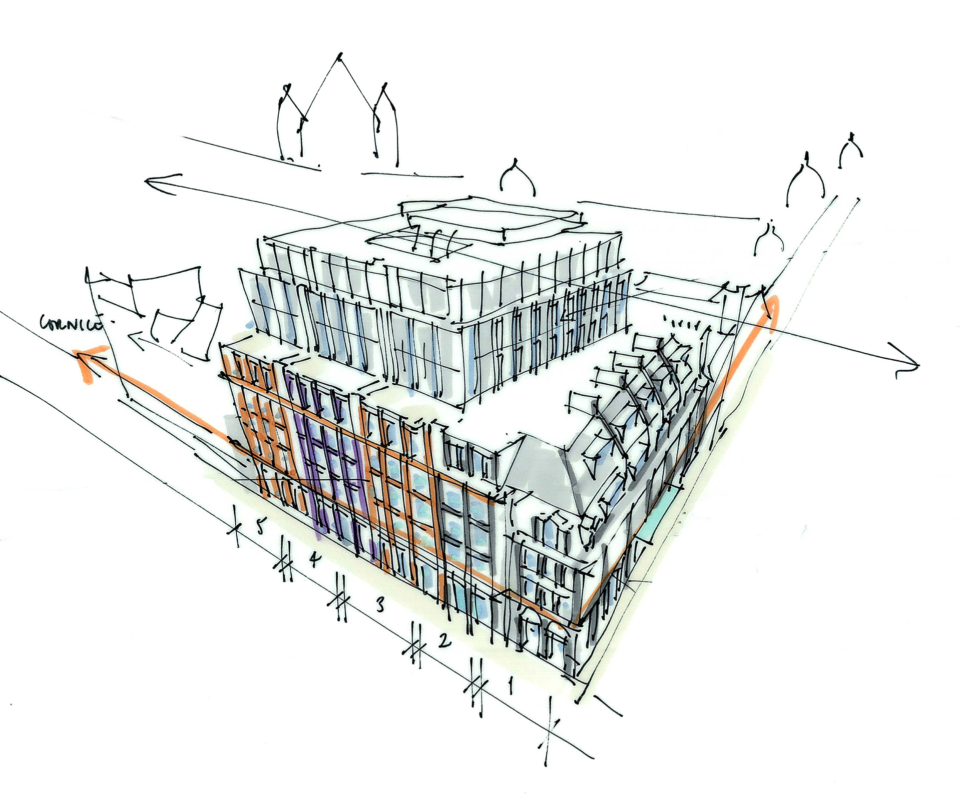 Our BREEAM Excellent, sensitive design enhances the urban grain, scale and texture of the Chancery Lane Conservation Area, upholding the richness and diversity of the location and providing a dynamic frontage along Chancery Lane and Bream’s Buildings.