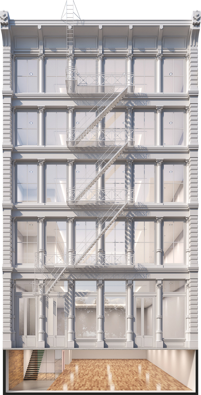 Located in the Soho Cast Iron District, our scope required restoring the façade, infrastructure upgrades, and converting the interiors to commercial office and retail space. Work commenced by filing for a new Certificate of Occupancy to change the building use from Manufacturing to Commercial.