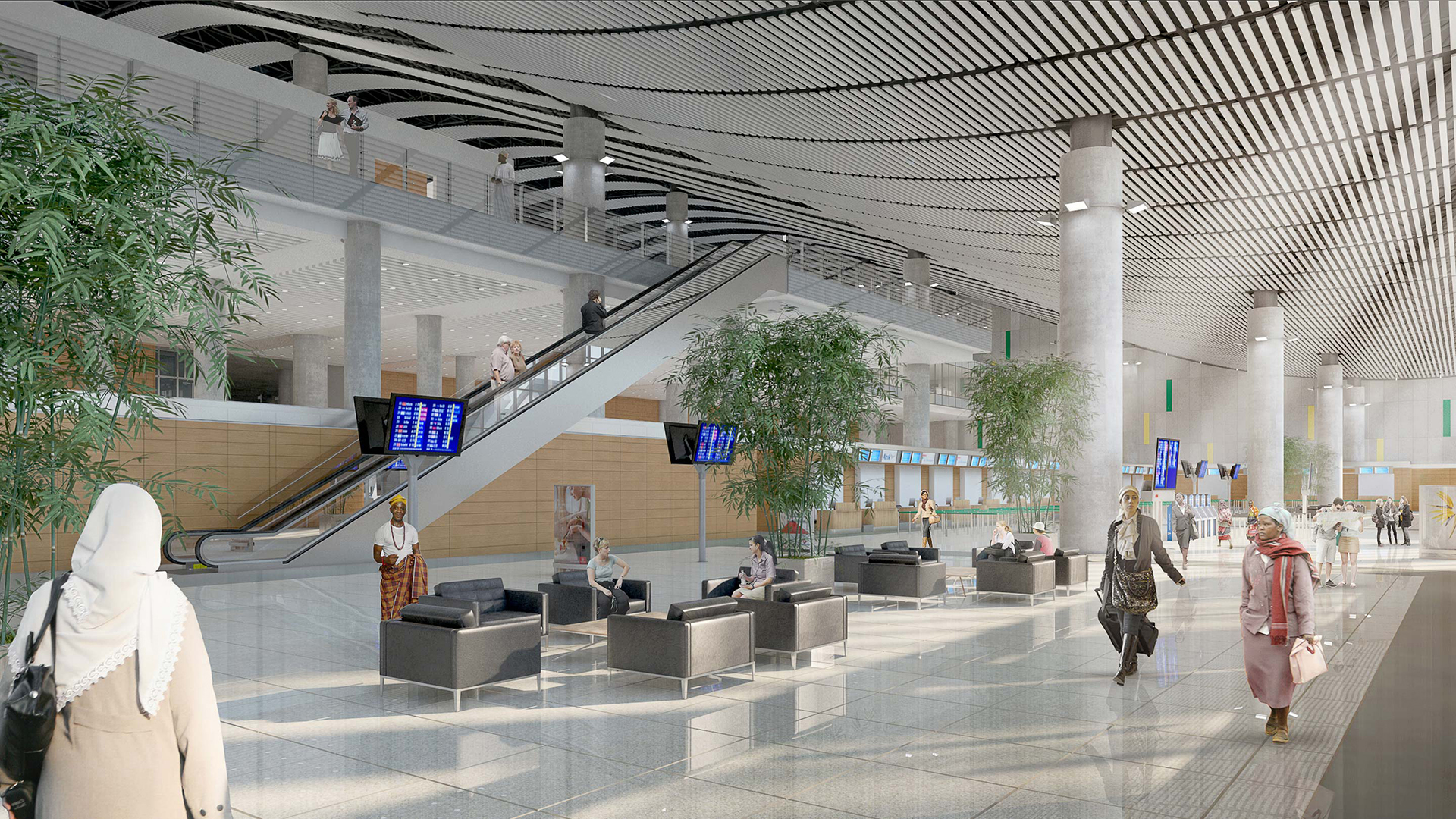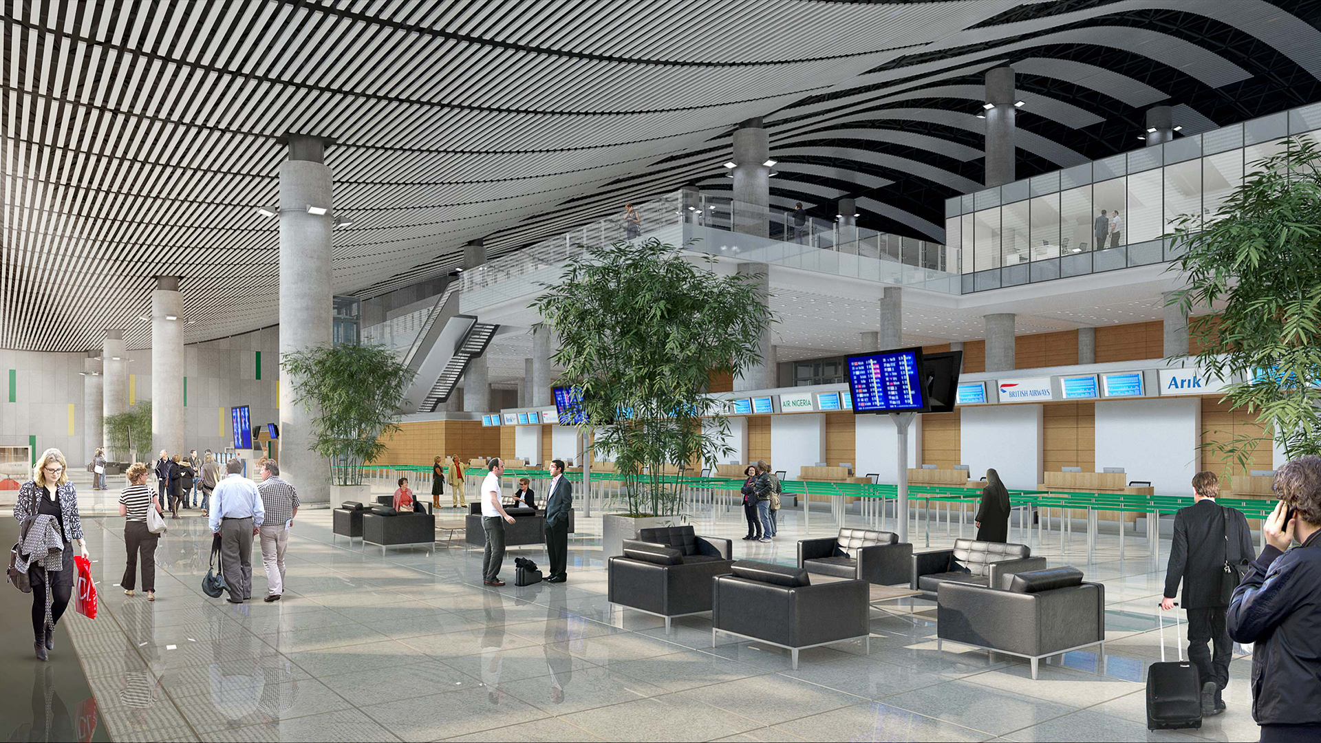 As the ‘gateway’ to the city, our design for the undulating roof of the new terminal and pier has been inspired by the aerodynamic profile of an aircraft wing and the outlines of the nearby Zuma Rock and surrounding hills. Our design for the new terminal incorporates two colours, yellow as which represents the colour of wealth, strength and stability in Africa and blue which is associated with depth and stability and symbolises positivity and confidence.