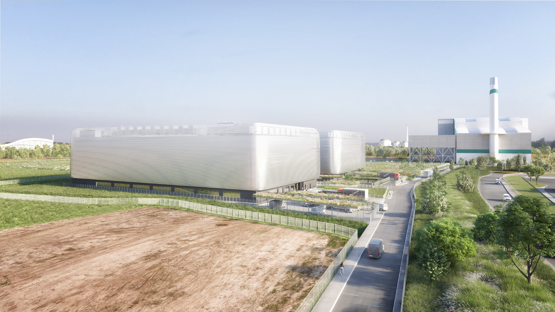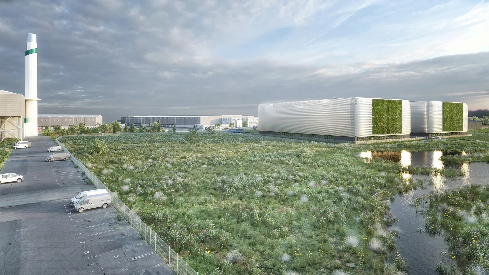 The buildings are conceived as industrial ‘vessels’ placed in a riverside setting