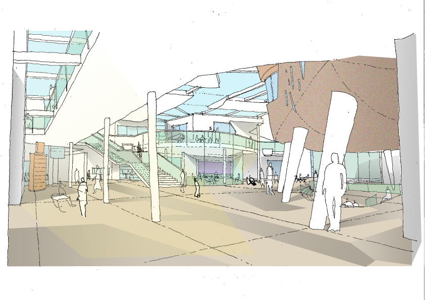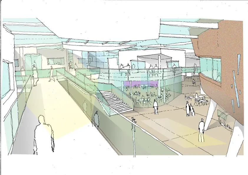 The layout of the building allows the learning landscape to flow into the central heart space and each of the federations. Interaction with external learning spaces takes place at every opportunity. The central heart space is viewed from all federation wings, a central ‘hive’ area is located within the learning resource centre, over the main entrance.