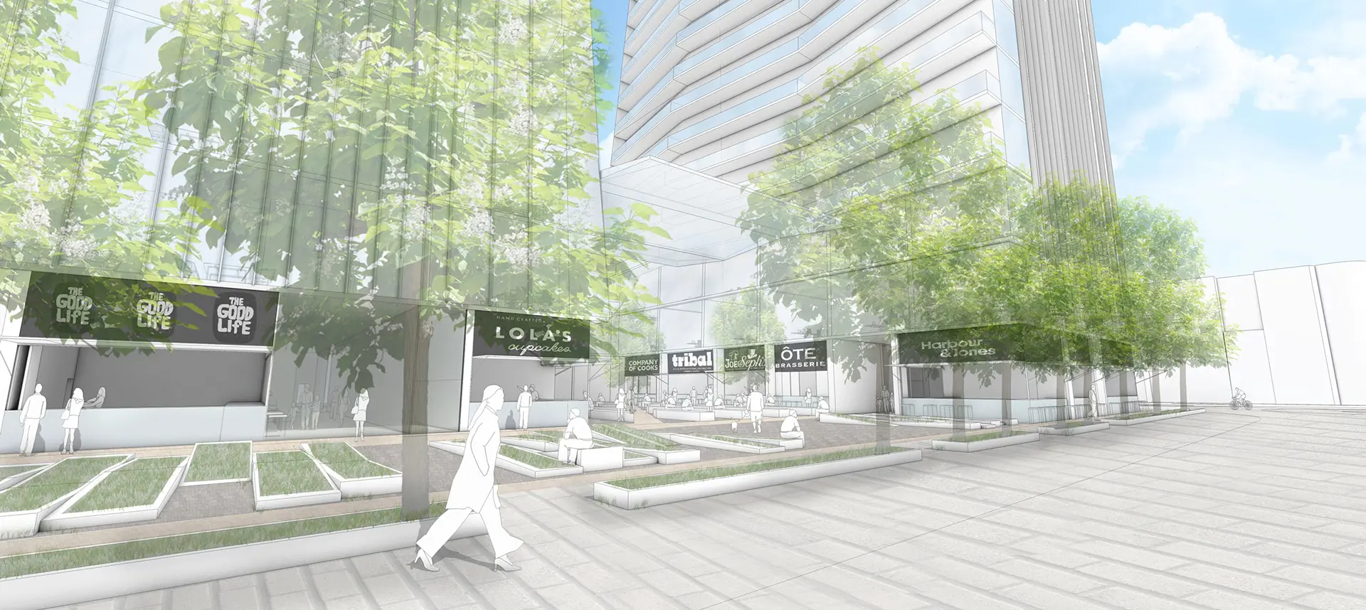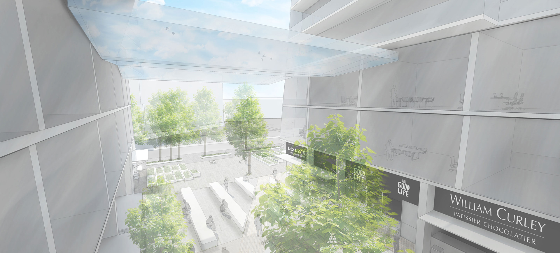 We have sculpted the towers to reduce their perceived mass, achieving a slimming visual effect at the higher storeys and allowing a view to the sky from all angles. The angled facades work to deliver maximum daylight into the central courtyard and apartments; at street level our new food offer is a unique concept where the point of production is co-located with the point of consumption.