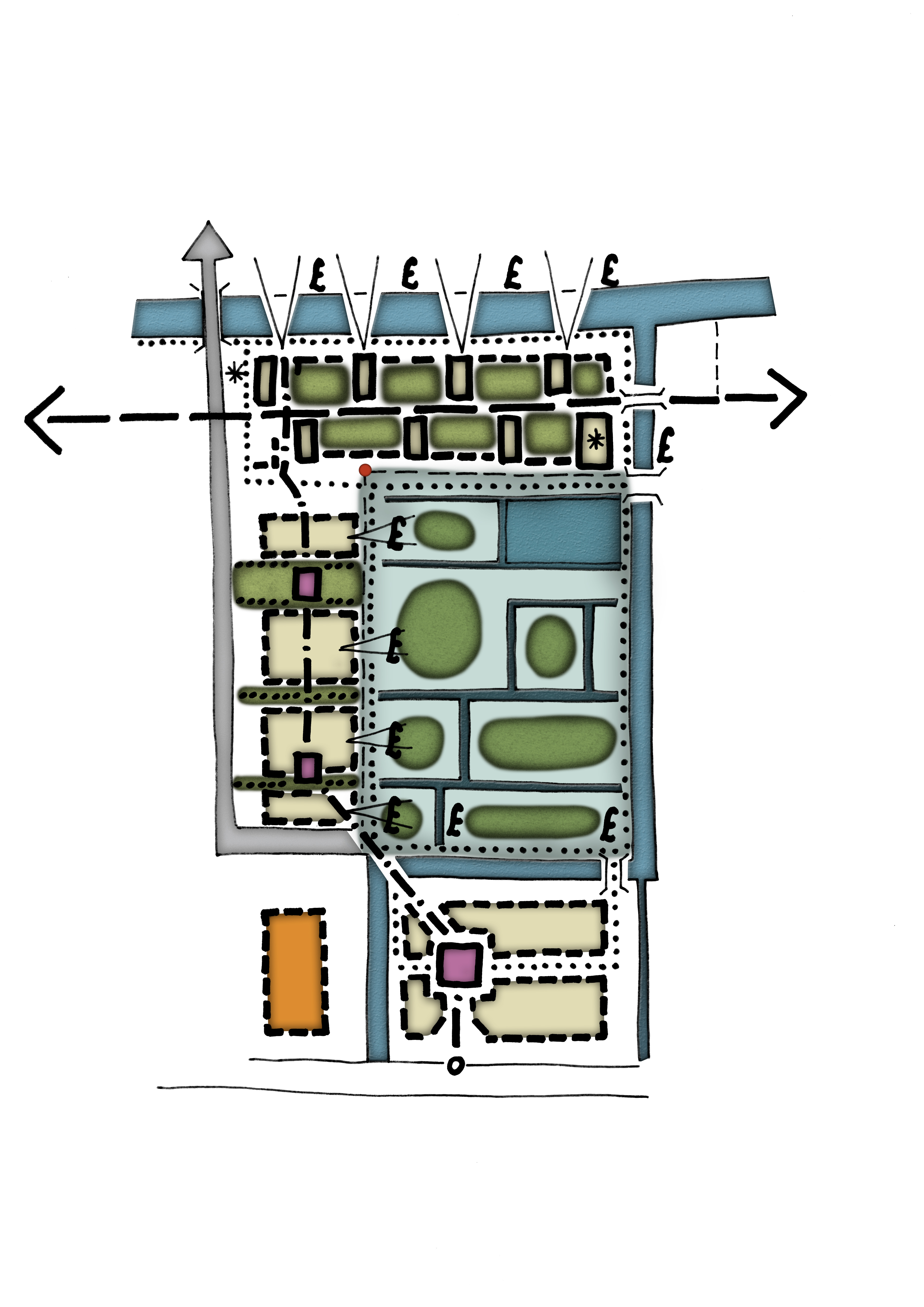 500 east-facing apartments look across a large flood meadow, with new elevated walkways and viewing ‘drums’ placed within the landscape harking back to the site’s former use. A new bridge crossing the River Yare connects the main site to the May Gurney Island of 500 urban houses and waterfront apartments.A pedestrian bridge connecting to a former pumping station is reinterpreted as a microbrewery and community business centre.