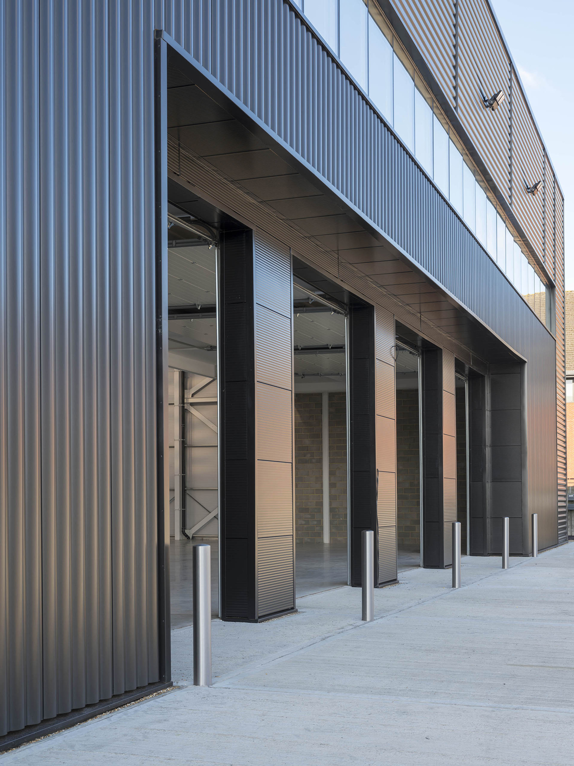 We used freestanding white concrete portal frames to mark the entrance to each building. By incorporating 15% rooflights we have provided more natural light than required, making a better working environment for building users. The project is BREEAM Excellent.