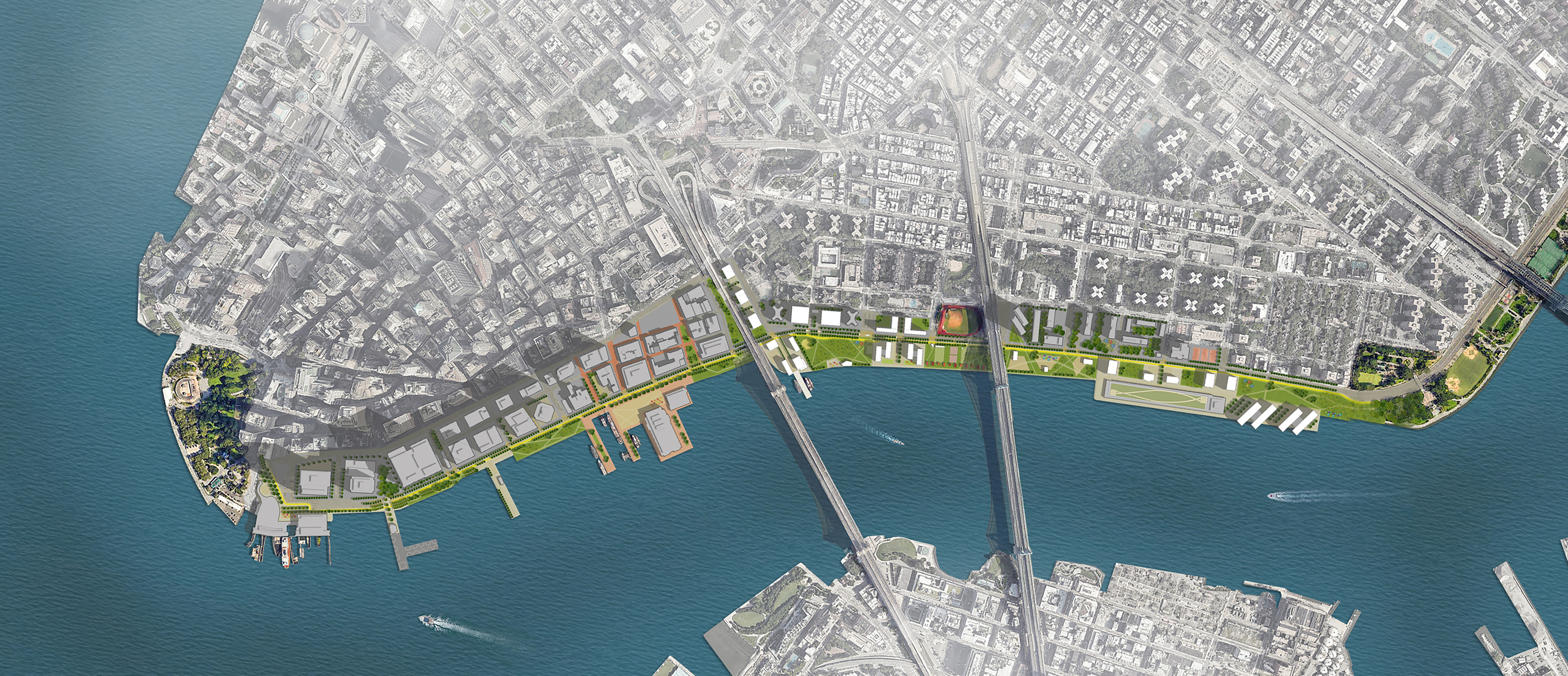 The aim of the Financial District Coastal Improvement Program [FDCIP] is to design a multifaceted waterfront improvement initiative that mitigates flood risk, reduces the pollution of New York City’s waterways, creates a vibrant open waterfront and spurs increased real estate value from Battery Park to Corlears Hook.