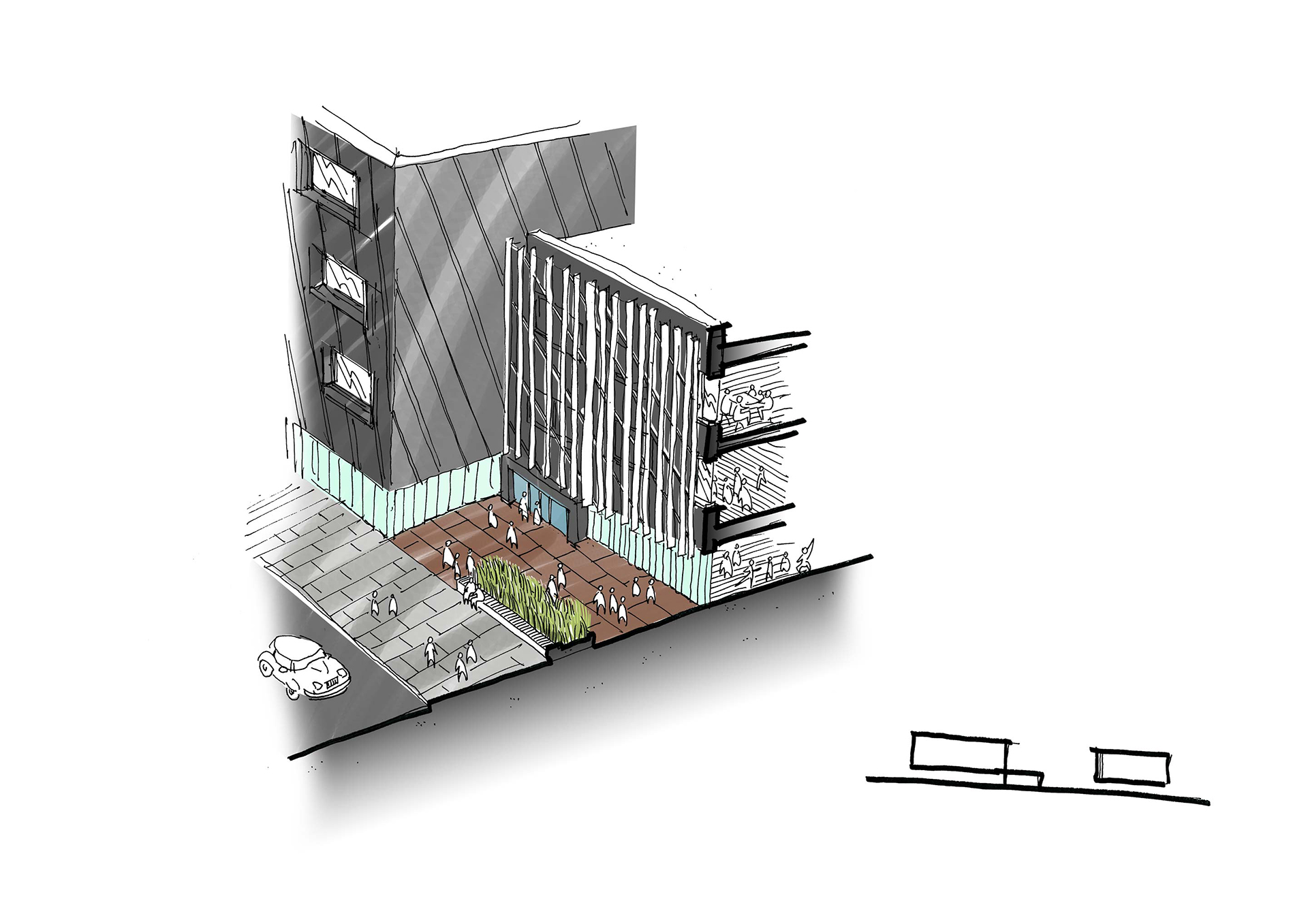 Unusually, the building forms the secure line to the street and spaces utilised by the community are located at ground floor level – helping activate the street frontage. Vertical brise soleil provides solar shading and an element of visual screening. The building is low carbon and energy efficient and become a catalyst for the regeneration of this area of West Croydon.