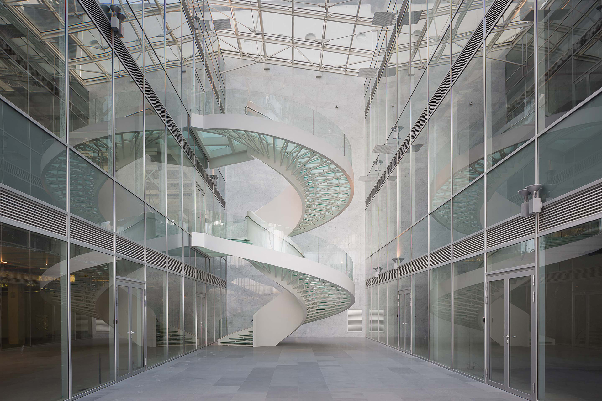By reusing the existing building instead of demolishing it, we transformed the previously ineffective deep plan layout into an efficient flexible space. We subdivided the floor plate by introducing two atriums, creating a sequence of spaces which were accessible from the new entrance. Our design makes the most of daylight and encourages occupants to interact. Once completed, the building was immediately leased to two major tenants, with the Adidas Group taking 20,000sq m.