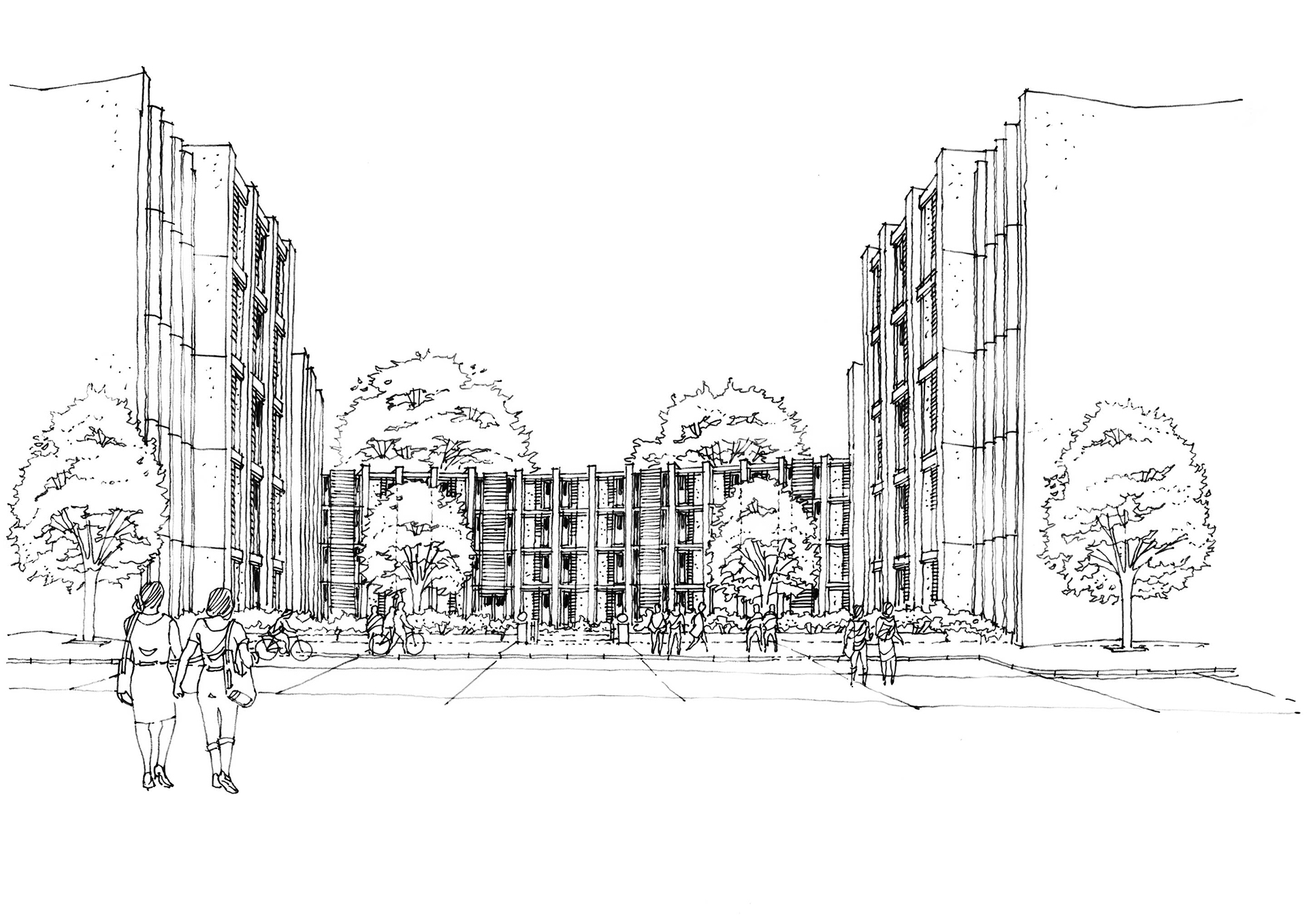 We were briefed to design a new student residential quarter to redefine the accommodation at the University of Surrey, a series of residential buildings forming courtyard spaces, each with a unique character.