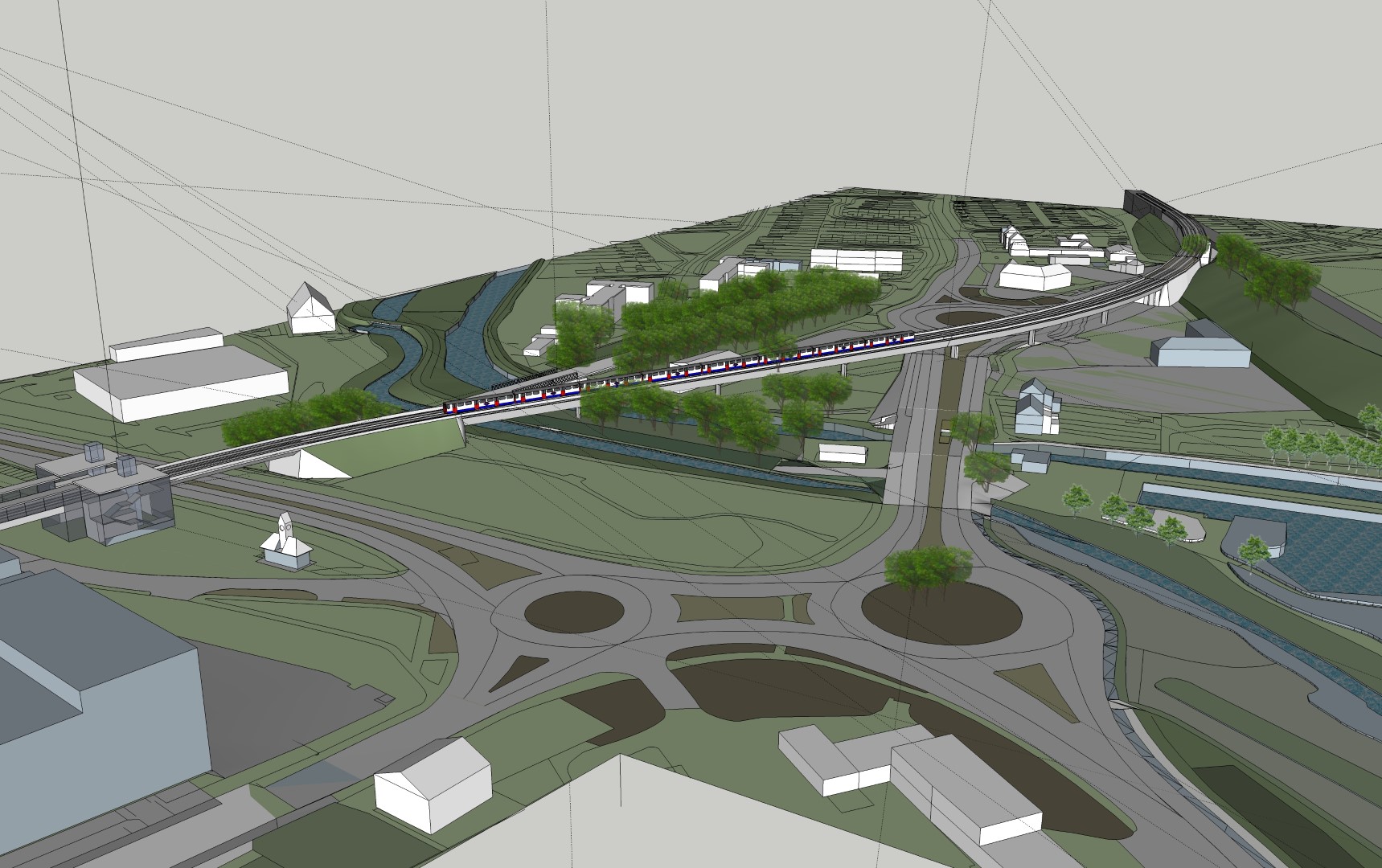 We created initial designs to achieve Department for Transport funding, with significant stakeholder involvement and public consultations. The Rail Link was awarded the necessary central government funding required for its construction. Work on the extension stopped in 2016 due to anticipated cost overruns and an unresolved dispute over funding.