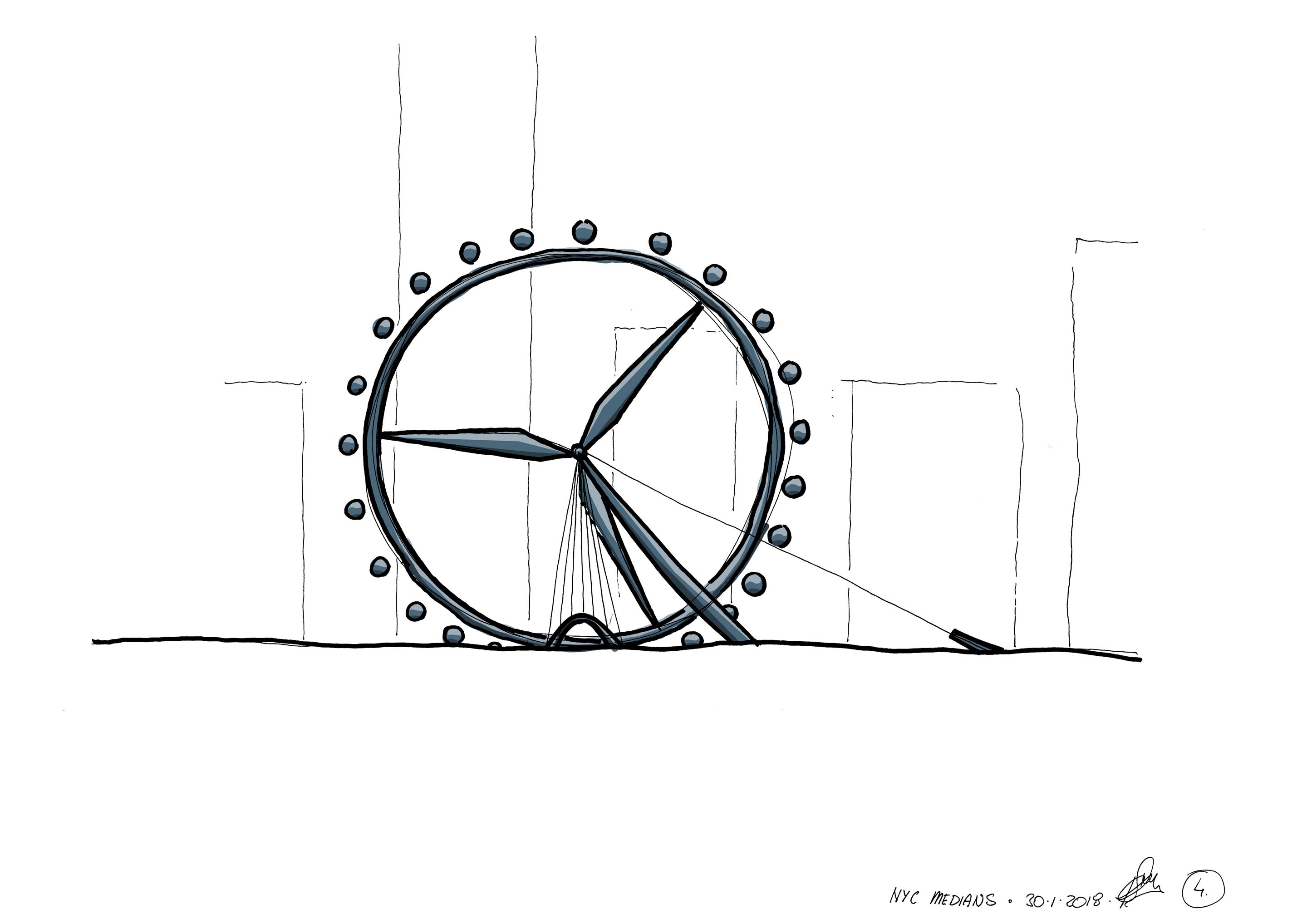 Our concept has been inspired by the “expect the unexpected” concept. Our dual-purpose Wind Turbine, offers a dynamic viewing experience; from up close high-level views of Park Avenue Skyscrapers to unobstructed northern views for the length of Park Avenue and beyond; offering a first time perspective for the public to enjoy. And there is an environmentally conscious twist; it is powered by the wind passing between the buildings towards its strategic location and as the turbine slows down the energy is captured and stored for re-use or deployment elsewhere within the city.