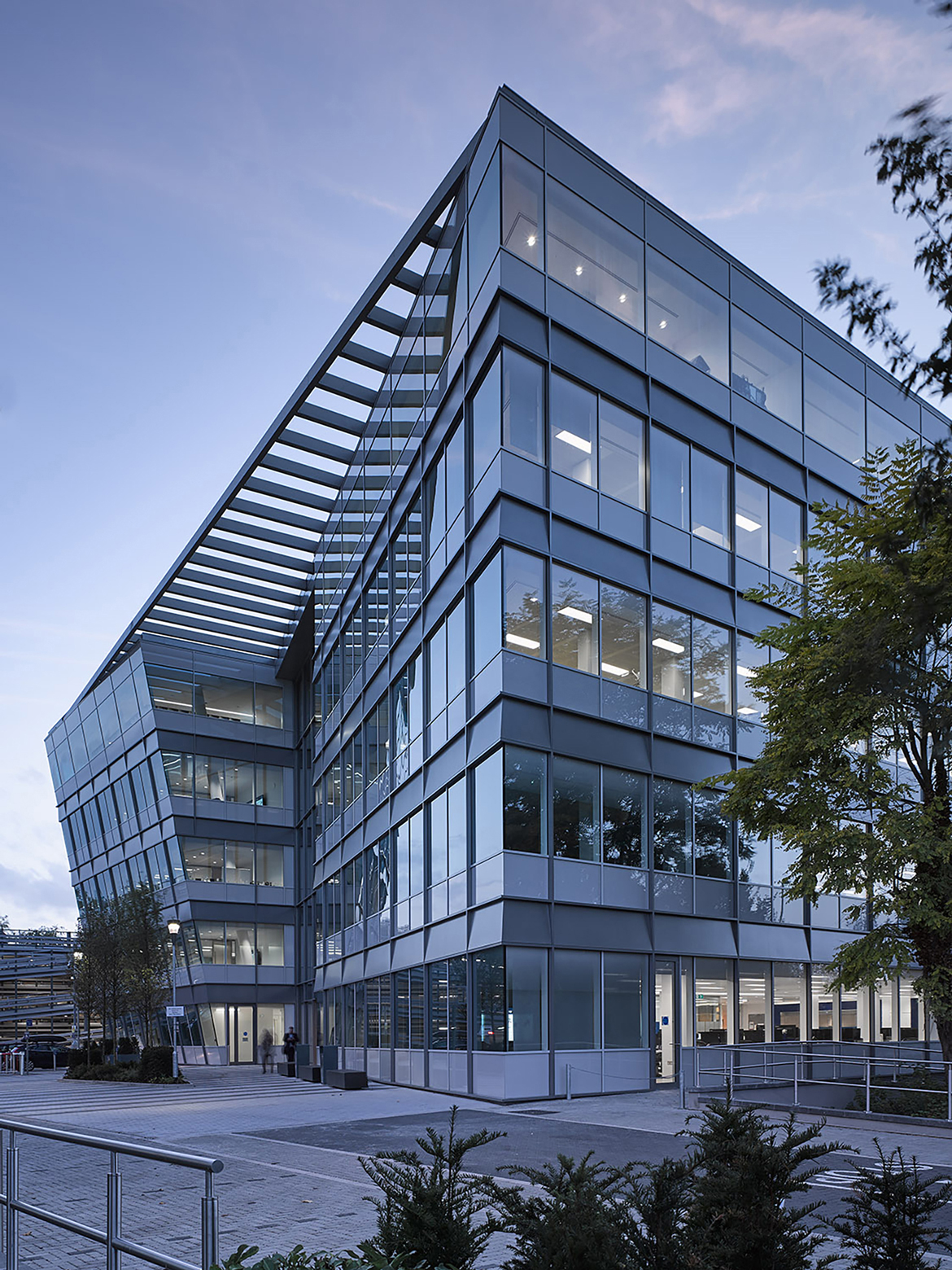 Our design needed to be architecturally exciting yet attractive to a contractor, in what was a heated market. By using flexible, simply divisible floorplates that surround a large central atrium with interlinking bridges, we could future-proof the building for multi-tenants whilst also animating the atrium space and providing opportunities for chance interactions. The headquarters building not only recognises the desire to provide a strong formalistic approach to its setting, but also provides a highly efficient, flexible building that incorporates state-of-the art facilities for this leading technology research company.