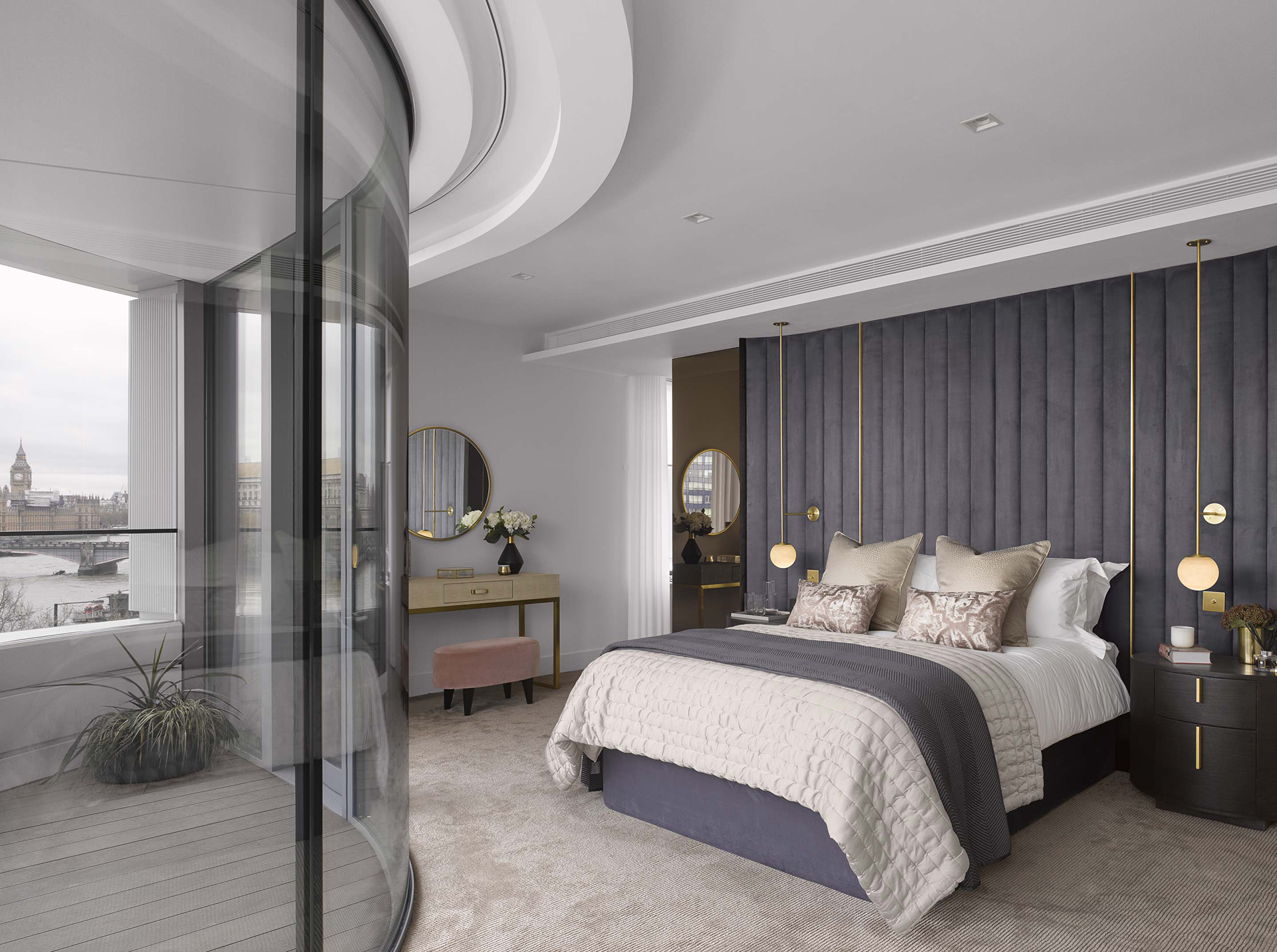 Our concept for the show apartment celebrates the contextual setting and outer form. We have created an interior which suggests depth and richness whilst introducing a soft layer of romance to the space.
