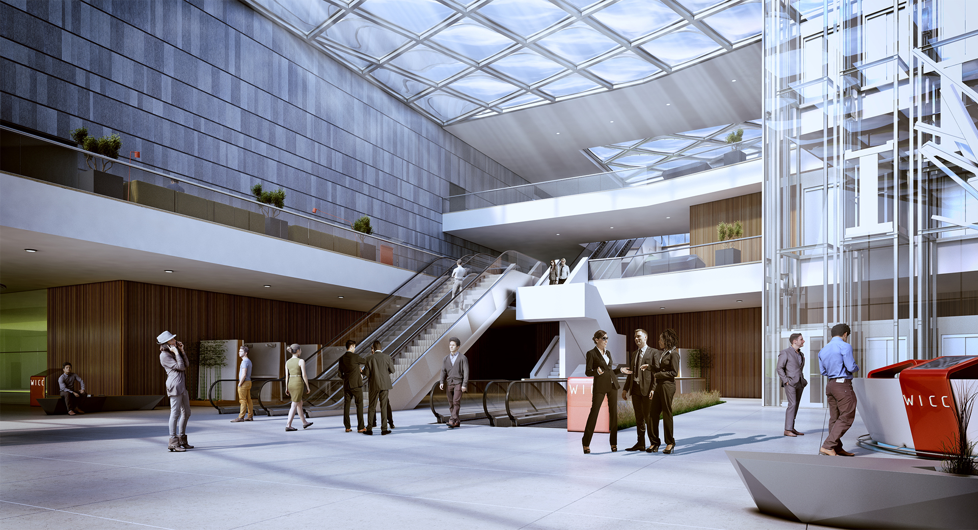 The conference centre is the largest in Wales and the south west of England and includes a 4,000 sq m open plan hall that can be divided into six independent spaces, a 1500 seat raked auditorium, and six other dedicated venues with the capacity to host a wide range of group sizes. The support spaces provide break-out facilities with additional flexibility contributing to the overall flexibility of the convention centre.